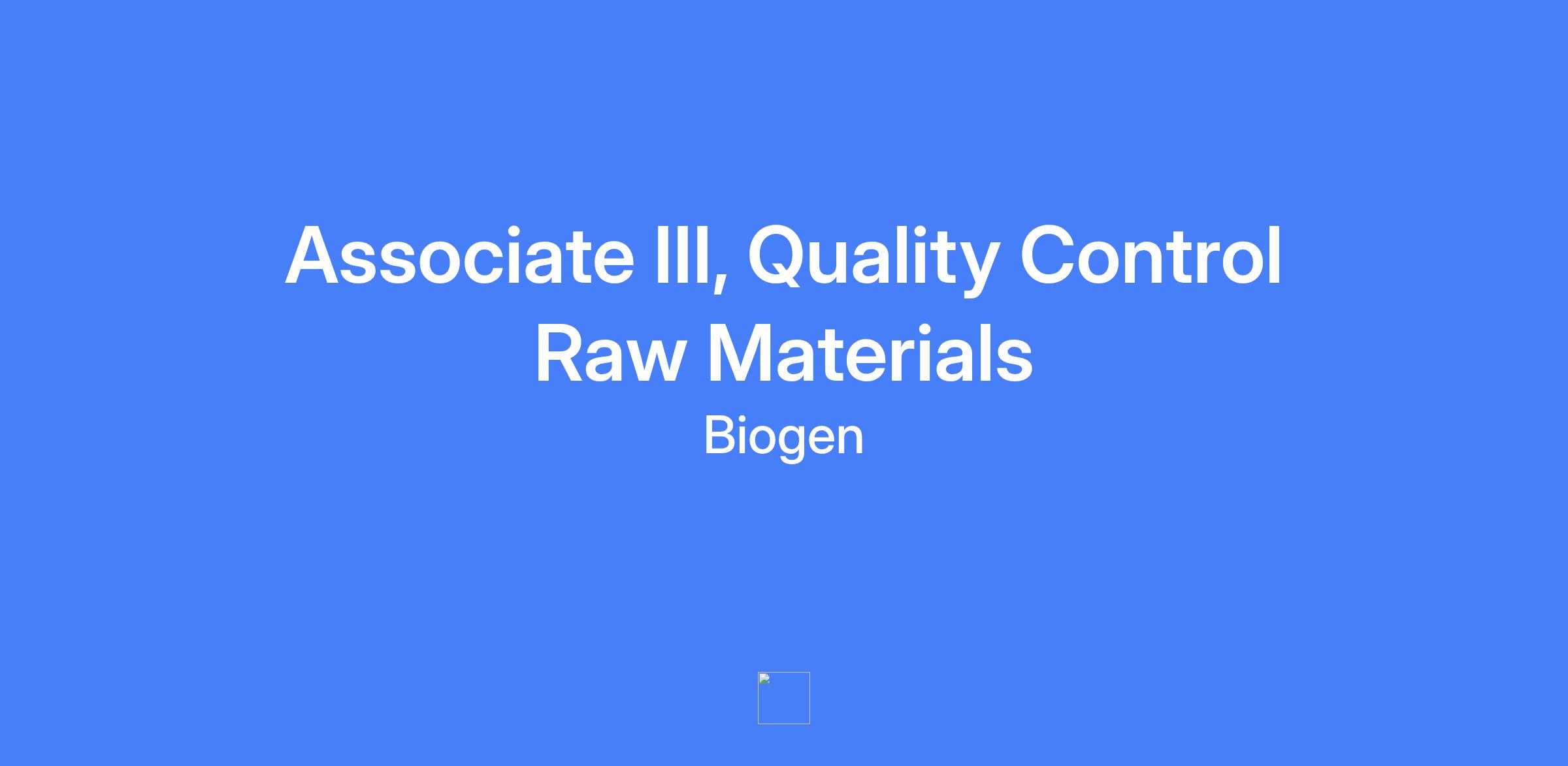 Associate III, Quality Control Raw Materials at Biogen RTP is a full-time, on-site role (M–F, 8:00 AM–5:00 PM). The position supports QC Raw Materials objectives by sampling, inspecting, and testing raw materials in compliance with cGMP documentation standards. Expertise in Gas Chromatography (GC) and wet chemistry is essential for compendial testing and data entry into electronic laboratory information management and inventory systems.