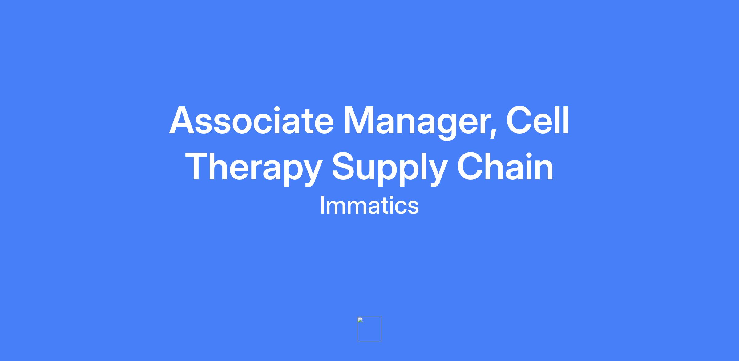 Associate Manager, Cell Therapy Supply Chain. Join Immatics and shape the future of cancer immunotherapy; one patient at a time. The role oversees the patient journey from screening through treatment across TCR-based immunotherapy platforms, working cross-functionally with internal and external stakeholders to ensure therapies reach patients quickly and efficiently.