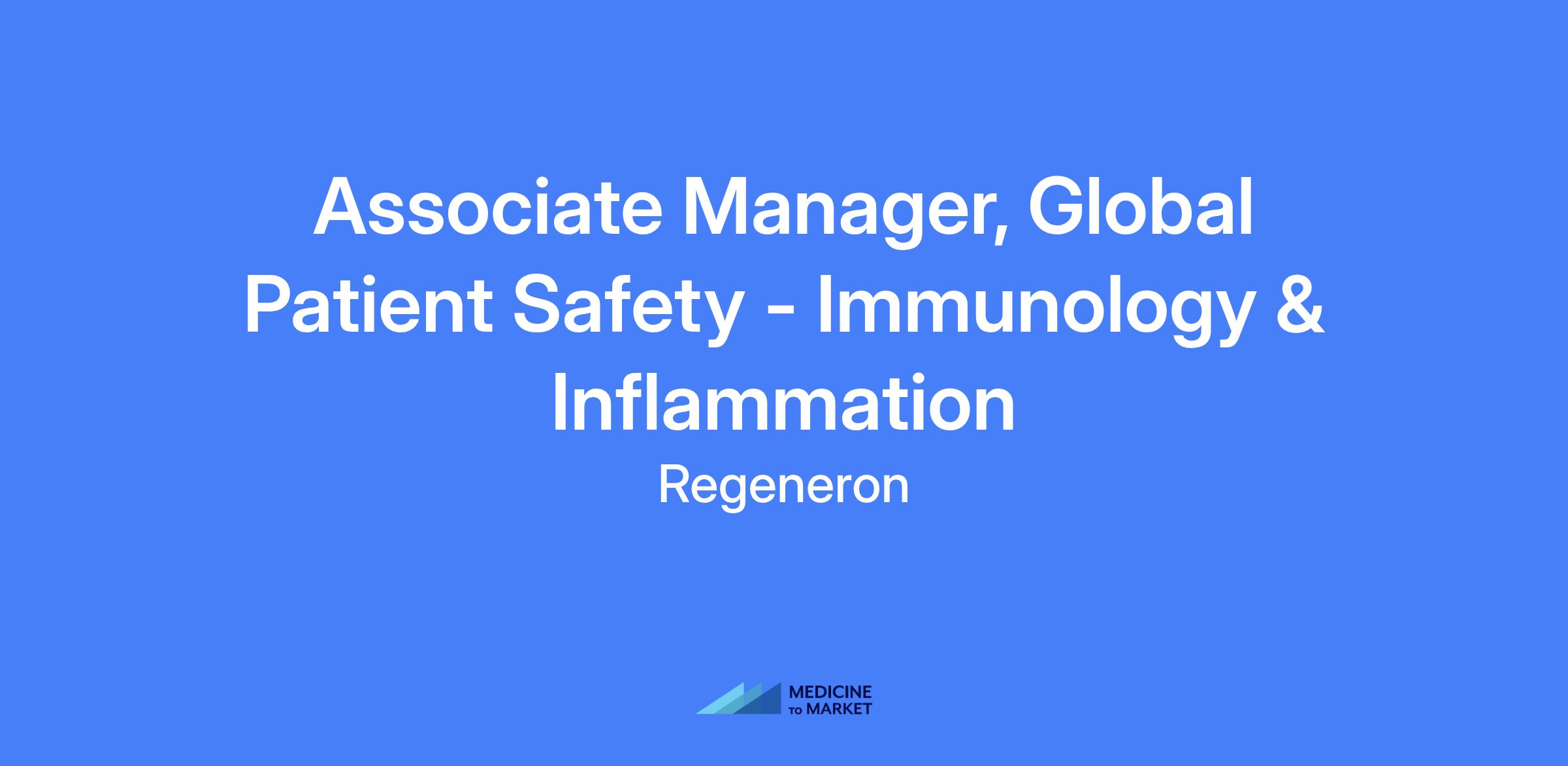 Associate Manager, Global Patient Safety - Immunology & Inflammation. Regeneron's Global Patient Safety Sciences team seeks an Associate Manager to support risk management activities, prepare periodic safety documents, and serve as an in-house subject matter resource for assigned therapeutic area programs.
