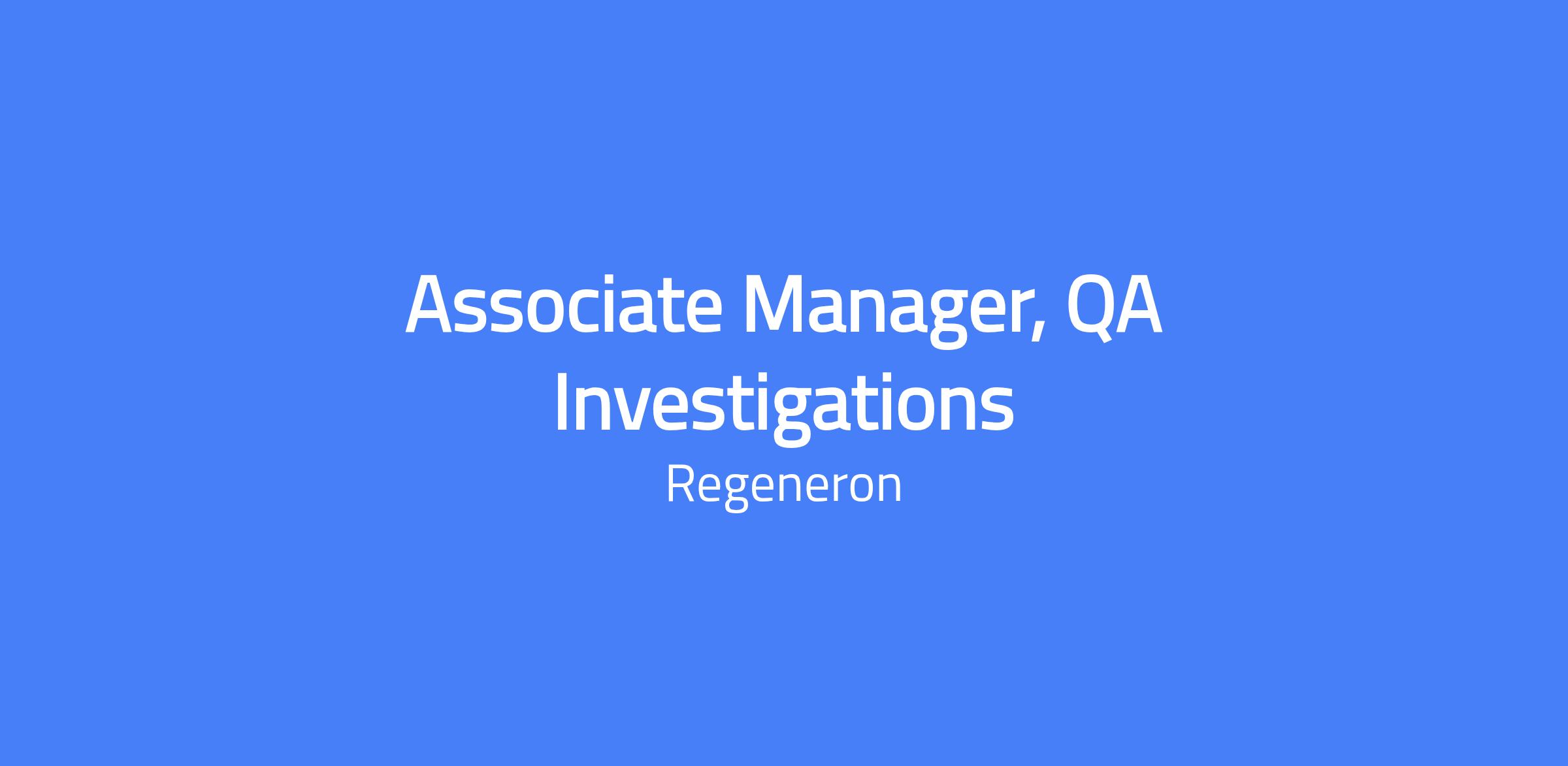 Associate Manager, QA Investigations is responsible for oversight of quality review, quality approval, and management of deviation events, investigations and CAPA.