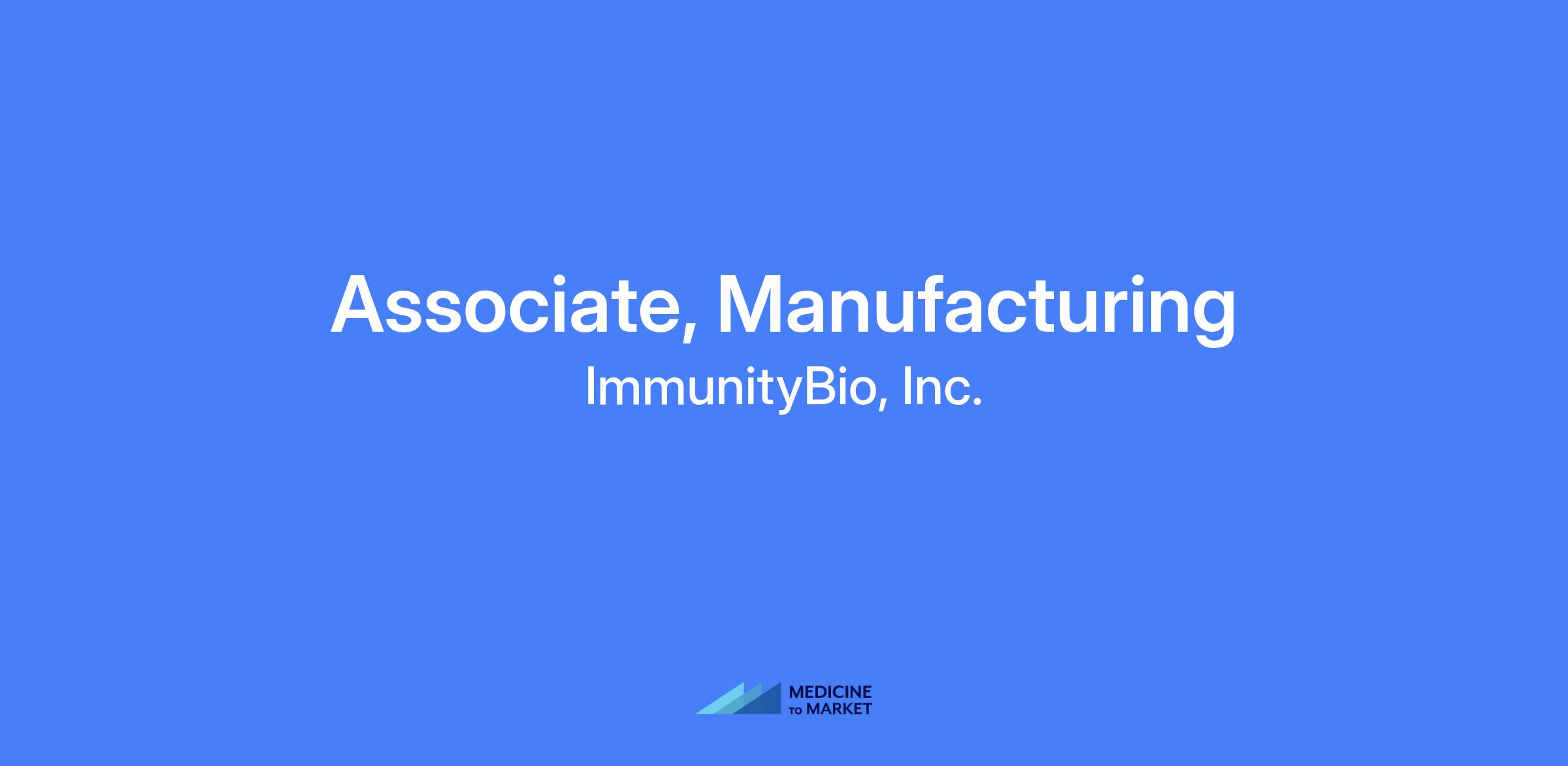 The Associate, Manufacturing is responsible for supporting biological manufacturing. All functions and roles of the manufacturing process are required to be performed with adherence to cGMP and GDP to ensure successful, quality operations.