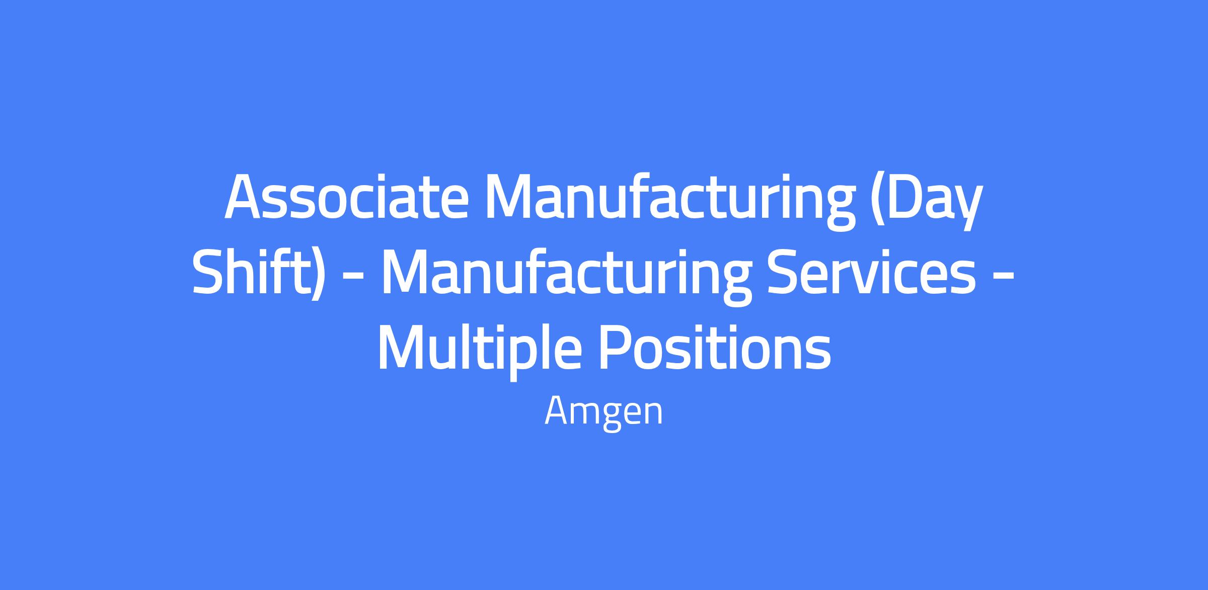 Associate Manufacturing (Day Shift) in Manufacturing Services at Amgen North Carolina. This role supports 24/7 manufacturing operations on a 12-hour 2-2-3 schedule (5:45 a.m. to 6:15 p.m.), performing floor operations and manufacturing of cGMP drug substances. You will work under general direction, collaborating with cross-functional teams to ensure safe, compliant production.