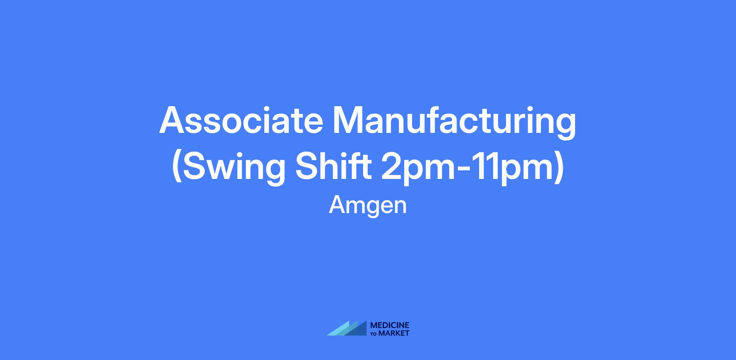 Associate Manufacturing (Swing Shift 2pm-11pm) at Amgen. The role collaborates with multiple functions within the Thousand Oaks site to develop a deep understanding of manufacturing operations and planning activities, contributing to the production of innovative medicines.