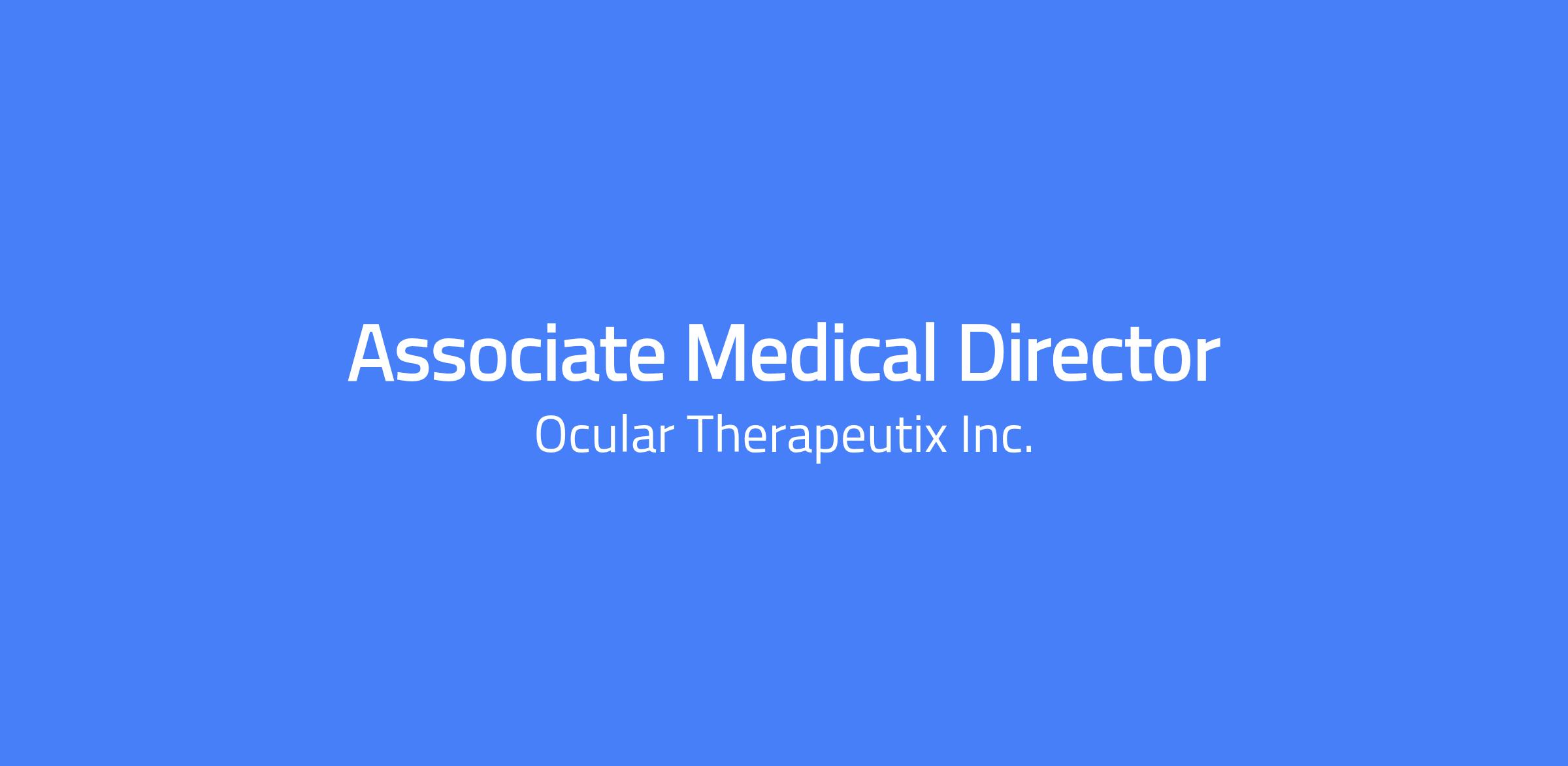 The Associate Medical Director is a strategic medical affairs role supporting the development and lifecycle of innovative retinal therapeutics. Serves as a key medical and scientific partner to internal teams and external stakeholders, including retina specialists, investigators, and key opinion leaders (KOLs), contributing meaningfully to evidence generation, scientific exchange, and medical decision-making across the drug development continuum. Retina clinical research experts responsible for the co-development and execution of Medical Collaboration scientific strategies spanning clinical development studies (phases 1-3), post-marketing studies, and payer-informed research activities. Associate Medical Directors drive clinical trial enrollment support and strategic enrollment activities (steering committees, study coordinator committees, and investigator advisory boards) in collaboration with Clinical Operations. Associate Medical Directors participate in the development of research questions, data analysis, interpretation, presentation, and publication of Ocular Therapeutix data across Scientific Congresses and payer audiences (as needed.)