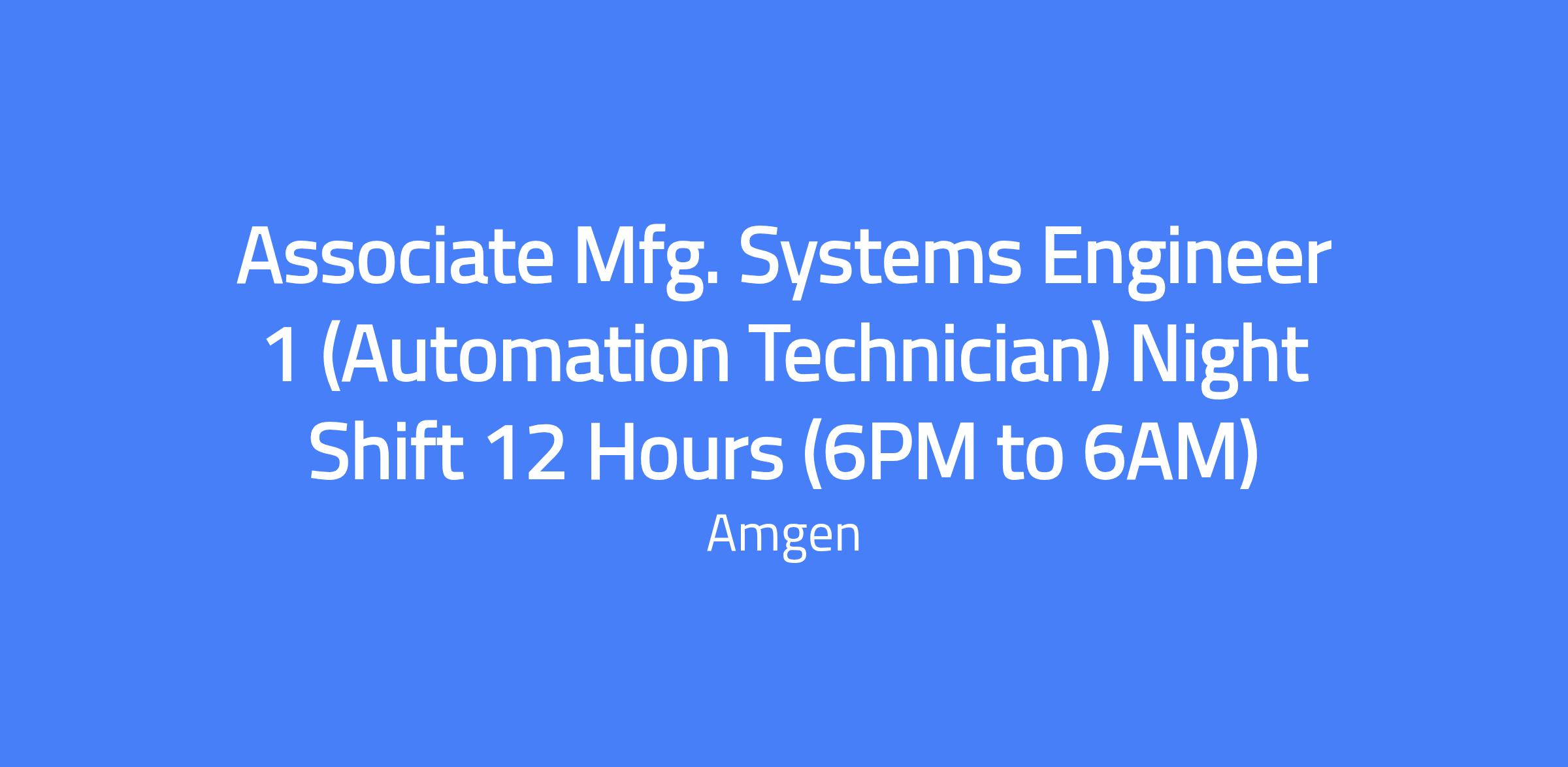 Associate Mfg. Systems Engineer 1 (Automation Technician) Night Shift 12 Hours (6PM to 6AM)