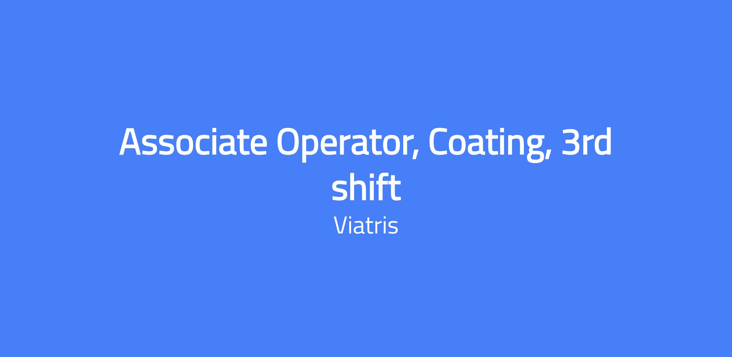 The Associate Operator, Coating, 3rd shift role supports production operations within the coating process. Responsibilities include visual inspection of products and equipment, setting up and running production equipment, preparing and cleaning manufacturing areas, proper labeling and storage of products, and documenting material runs. The role may involve training new personnel and performing calibration tasks as instructed.