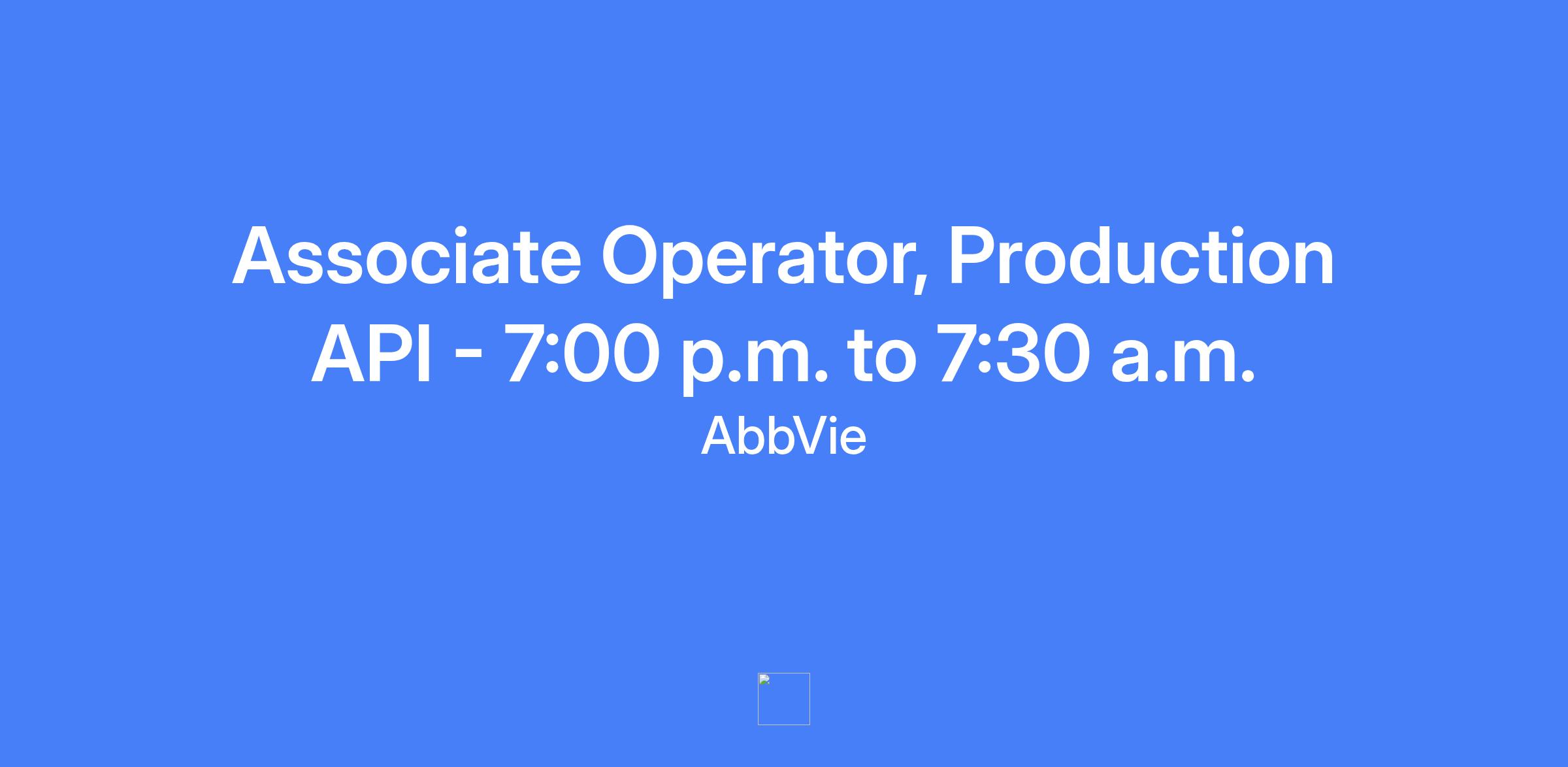 Associate Operator, Production API, working 7:00 p.m. to 7:30 a.m. Sets up equipment for routine processes and operates complex equipment under general supervision to monitor manufacturing processes. Becomes conversant with the overall functionality of departmental processes and communicates operational events. Identifies opportunities for improvement and assists with changes in operations and documentation. Position includes two 12-hour shifts on/2 days off, plus three 12-hour shifts on/3 days off.