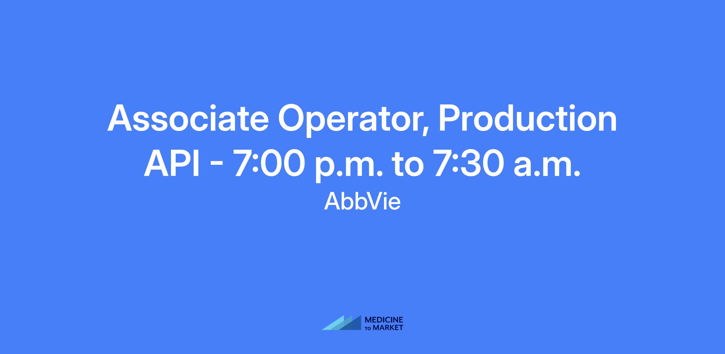 Associate Operator, Production API, working 7:00 p.m. to 7:30 a.m. Sets up equipment for routine processes and operates complex equipment under general supervision to monitor manufacturing processes. Becomes conversant with the overall functionality of departmental processes and communicates operational events. Identifies opportunities for improvement and assists with changes in operations and documentation. Position includes two 12-hour shifts on/2 days off, plus three 12-hour shifts on/3 days off.