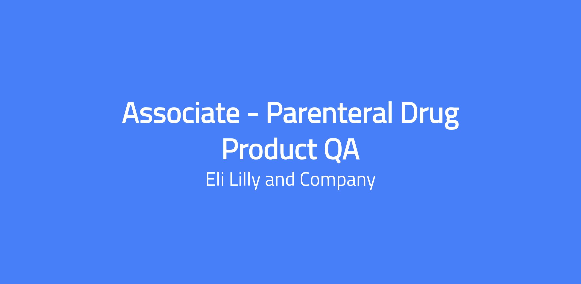 Associate - Parenteral Drug Product QA. The role supports quality assurance for a CT parenteral drug product filling facility, providing quality support for sterile CT parenteral drug product production and supporting commissioning and qualification activities for a new manufacturing line or expanded capabilities. This role collaborates across functions to ensure compliance with regulatory standards and cGMPs, supports internal capability development, and will be based in Indianapolis, Indiana (LTCN).