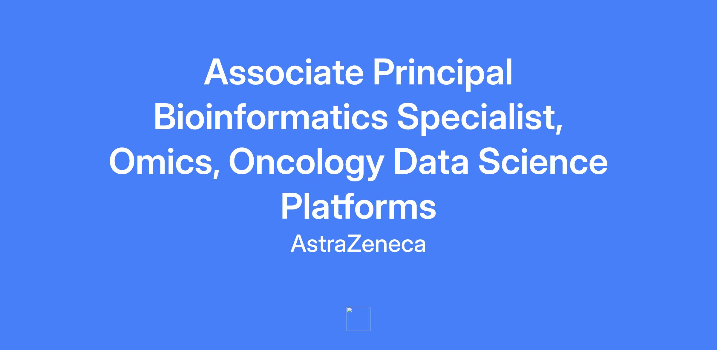 Associate Principal Bioinformatics Specialist, Omics, Oncology Data Science Platforms. The role focuses on bioinformatics pipelines, AI and data engineering workflows for biomarker discovery, leveraging AI-native approaches and Foundation Models to improve productivity and augment workflows, with a goal of advancing cancer research and biomarker discovery.
