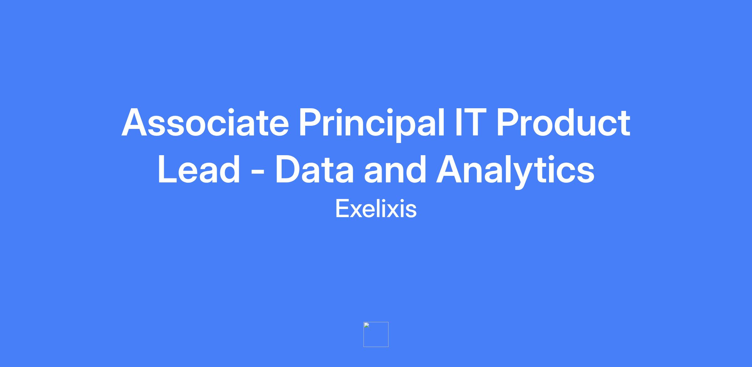 The Associate Principal IT Product Lead, Data and Analytics, will lead a portfolio of Data and Analytics products critical to Exelixis' success and ambition to launch innovative medicines for patients. This role is pivotal in driving the strategy, development, and operational excellence of our data and analytics applications ecosystem, ensuring alignment with business objectives and a strong focus on user experience and value delivery. Operating within a product-centric model, the Associate Principal IT Product Lead will be responsible for defining product roadmaps, fostering cross-functional collaboration, and leading agile product teams to deliver innovative and impactful digital solutions that accelerate drug discovery, development, and commercialization.