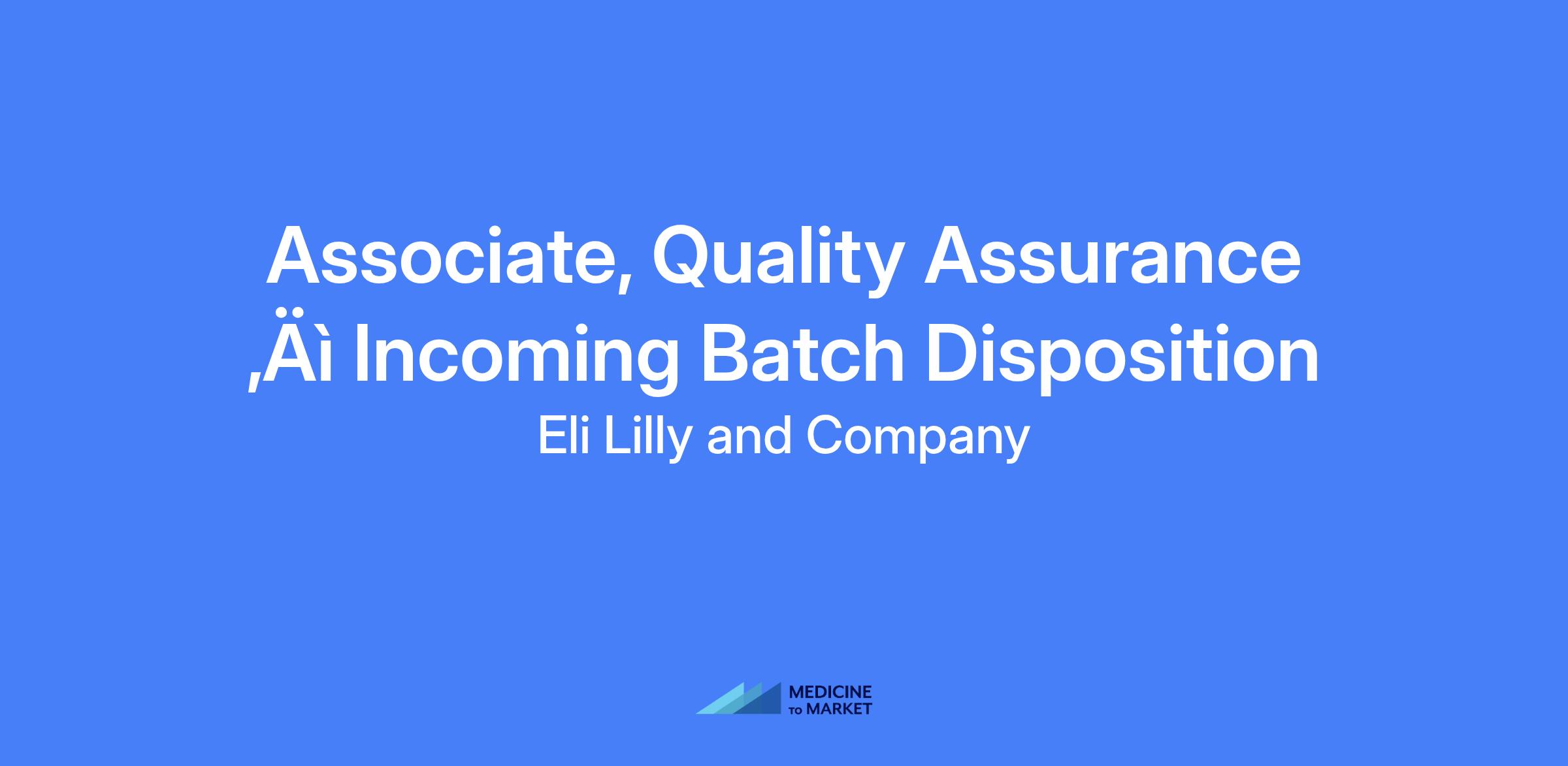 Associate, Quality Assurance – Incoming Batch Disposition. Responsible for release of incoming materials using SAP and Lab systems, including active pharmaceutical ingredients, components, and excipients. Provides guidance on non-conformance investigations, change control proposals, and batch disposition activities, and supports process teams on quality matters related to incoming materials.