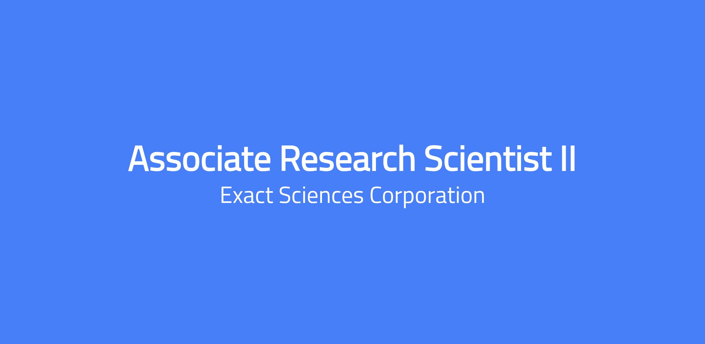 Help us change lives At Exact Sciences, weâre helping change how the world prevents, detects and guides treatment for cancer. We give patients and clinicians the clarity needed to make confident decisions when they matter most. Join our team to find a purpose-driven career, an inclusive culture, and robust benefits to support your life while youâre working to help others. Position Overview Working in a team setting, the Associate Research Scientist II will primarily be involved in Research and Development projects, actively participating in translating research ideas and concepts toward the development of diagnostic assay products. This role requires strong molecular biology expertise, with a preference for proteinâbased assays, though DNAâ and RNAâbased technologies are also applicable, and handsâon contributions to biomarker discovery, technology evaluation, and assay development. Essential Duties include but are not limited to the following: Conduct bench level experiments for molecular diagnostic assay development, with emphasis on proteinâbased assays such as enzymeâlinked immunosorbent assays (ELISAs), as well as nucleic acidâbased methods including qPCR. Formulate, calculate, and prepare reagents, buffers, and standards with a high degree of accuracy and attention to detail. With some guidance, plan experiments and analyze benchâlevel data using appropriate mathematical and statistical methods within a specific product or technology area. Strong attention to detail, including precise pipetting and execution of assay protocols. Operate scientific instrumentation related to performance of duties and notify appropriate personnel of any problems. Effectively utilize and apply methods or technologies and provide ideas for new techniques, when appropriate. Maintain knowledge of technological industry developments that could assist in completion of an assignment or aid in the development of new processes or procedures. Provide technical input and participates in decisions affecting project planning and experimental design. Prepare and provide information and generate data for scientific abstracts/conferences/project meetings/publications. Follow research plans and experimental outlines to write experimental protocols and perform laboratory experiments. Maintain lab notebook in a complete and consistent manner, following all legal, ISO, and QSR requirements, as well as keeping clear and complete. Prepare reports and documentation providing the analysis or summarization of experimental results and outcomes to supervisor, technical teams/groups, or project teams. Present experimental results, scientific ideas and findings, information, and updates at project or departmental meetings. Present clear project summaries and outcomes in written and verbal formats to supervisor and other members of the scientific team. Work on problems of diverse scope in which analysis of data requires evaluation of identifiable factors. Work on individual assignments and with project team members, as appropriate, to meet department and project objectives. Work within project timeframes that are established collaboratively by team members. Exercise discretion and independent judgement to interpret results, analyze data, and present findings in a professional and knowledgeable manner. Ability to train and mentor junior level research associates. Ability to organize, present, and convey moderate problems or issues. Ability to communicate clearly with supervisor and group members. Excellent presentation skills. Ability to collaborate and work effectively within team and department. Strong attention to detail skills. Ability to effectively work on several varied projects at one time, with frequent changing priorities. Successful in analytical, problem solving, and decision-making skills. Successful in technical proficiency, scientific creativity, collaboration with others, and independent thought. Uphold company mission and values through accountability, innovation, integrity, quality, and teamwork. Support and comply with the companyâs Quality Management System policies and procedures. Regular and reliable attendance. Ability to work nights and/or weekends, as needed. Ability to lift to 20 pounds for approximately 5% of a typical working day. Ability to work on a mobile device, tablet, or in front of a computer screen and/or perform typing for approximately 50% of a typical working day. Ability to grasp with both hands; pinch with thumb and forefinger; turn with hand/arm; reach above shoulder height. Ability to comply with any applicable personal protective equipment requirements. Ability to use various types of laboratory equipment including pipettes, pipetting robots, automated blood analyzers, thermocyclers, and spectrophotometers. May perform repetitious actions using lab tools. Ability to use near vision to view samples at close range. May be exposed to hazardous materials, tissue specimens and instruments with moving parts, lasers, heating and freezing elements, and high-speed centrifugation. Ability and means to travel between Exact Sciences locations. Ability to travel 5% of working time away from work location, may include overnight/weekend travel. Minimum Qualifications Bachelorâs degree in Life Sciences, Medical Technology, Clinical Laboratory Science, Chemical/Physical/Biological Science, or related field. 3+ years of relevant experience. 2+ years of hands-on experience in molecular biology and /or biochemical techniques. Basic understanding of GMP, ISO, and Quality Systems. Demonstrated ability to apply statistical and mathematical methods in biology/genetics/genomics. Proficient in Microsoft Office Word, Excel, and PowerPoint. Authorization to work in the United States without sponsorship. Demonstrated ability to perform the Essential Duties of the position with or without accommodation. Preferred Qualifications Hands-on experience with ELISA or closely related immunoassay technologies; dir