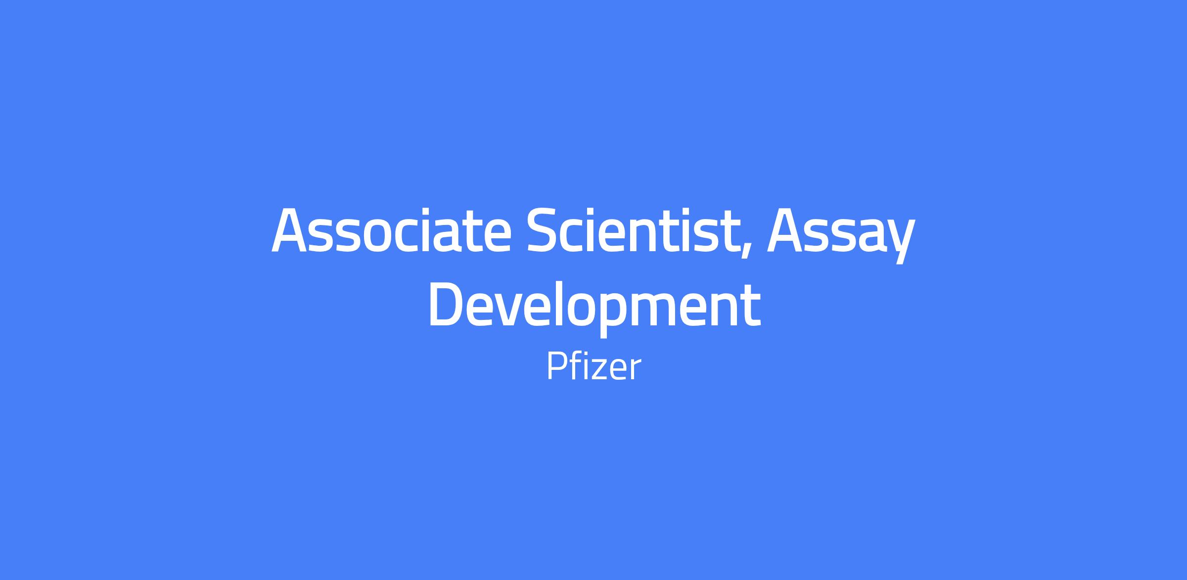 Associate Scientist, Assay Development at Pfizer’s BioMedicine Design group. The role focuses on establishing binding and functional assays and supporting hit-to-lead discovery of peptide and antibody-based therapeutics. You will design and execute biochemical and cell-based assays, perform high-throughput screening, analyze data, and collaborate with project teams to identify lead molecules.