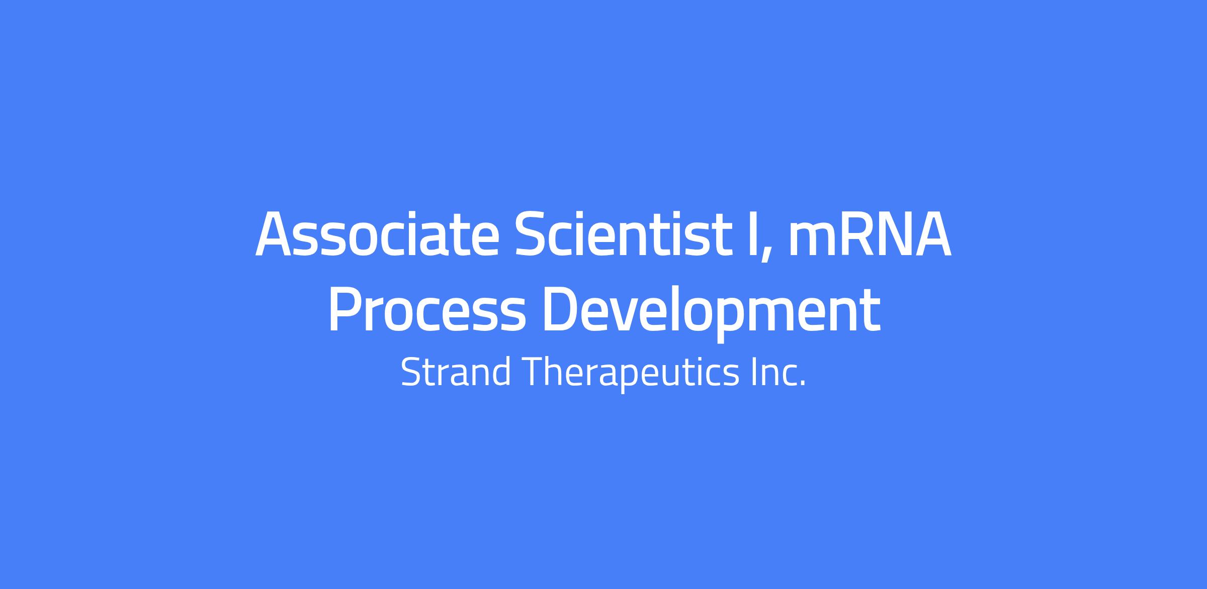 We are looking for a highly motivated and innovative candidate for the role of Associate Scientist I of mRNA Process Development. The expectation is that the Associate Scientist I will have experience independently executing mRNA process development experiments and production efforts. Reporting to Principal Associate Scientist of mRNA Process Development, the right candidate will be a strategic thinker that brings a leadership presence and enthusiasm for Strand along with a desire to conquer new challenges.