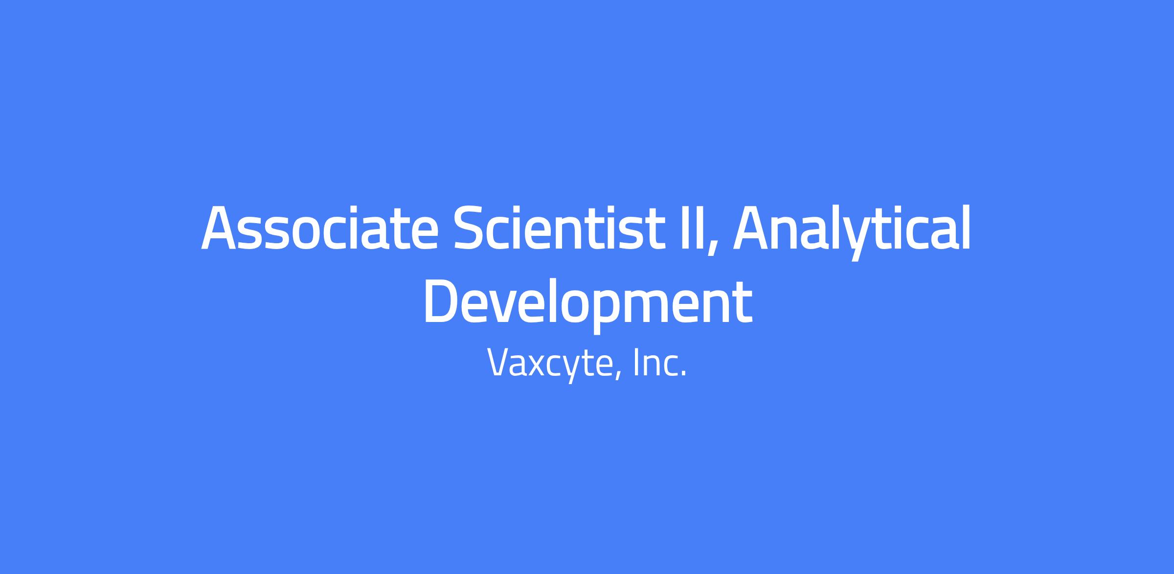 Vaxcyte has an exciting opportunity for an energetic and talented individual to join our Analytical Development team. The Associate Scientist II, Analytical Development, is responsible for executing analytical testing and supporting method development activities for biologics/vaccine development programs. This role will perform routine and non-routine analytical assays using modern analytical techniques and will contribute to method optimization, troubleshooting, and continuous improvement initiatives under supervision. The position requires demonstrated hands-on laboratory experience, strong technical execution, and the ability to work independently on routine tasks while supporting more complex development activities.