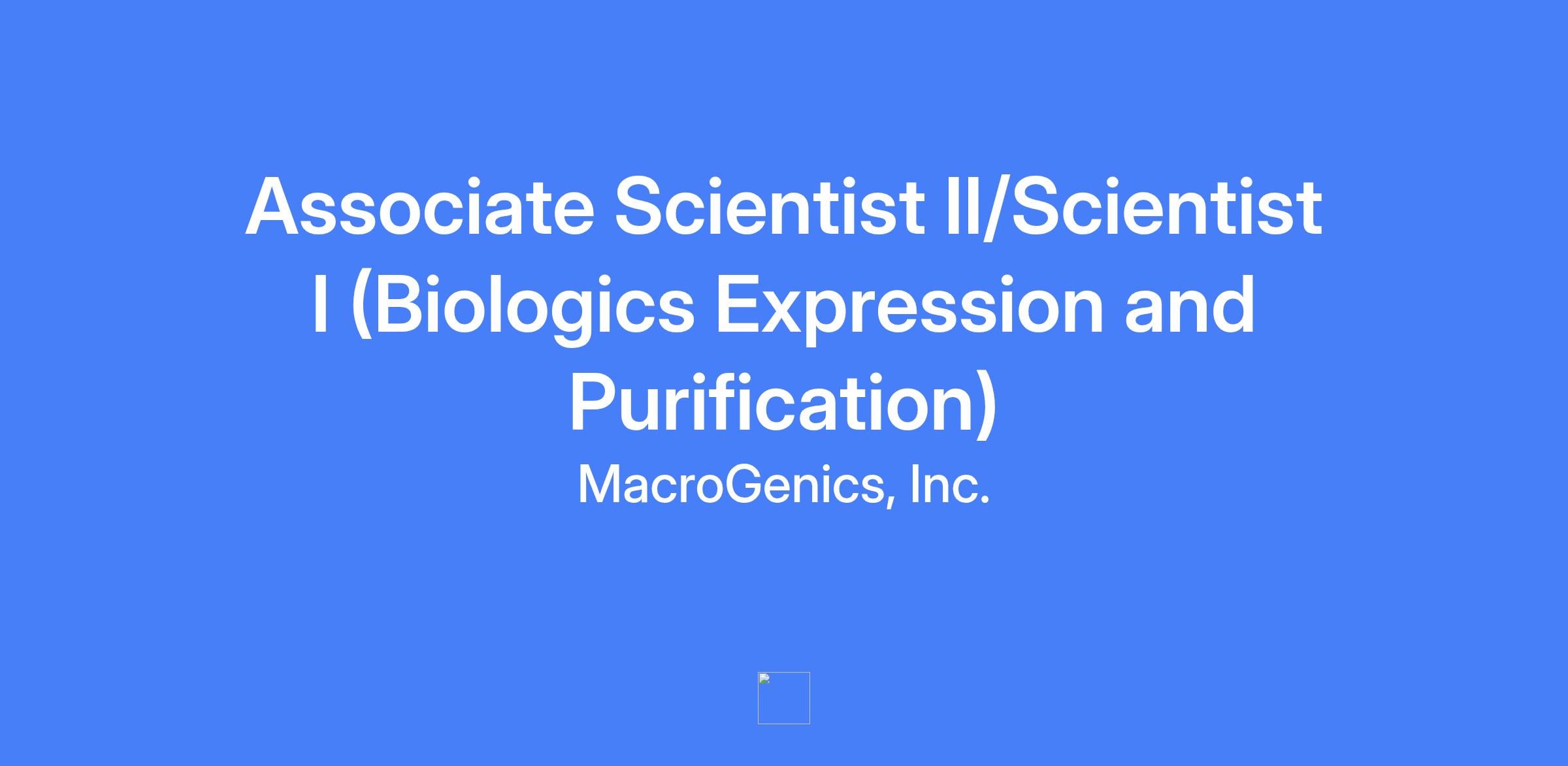 Associate Scientist II/Scientist I (Biologics Expression and Purification) - As a member of the Protein Science team, this individual will set up transfections to express proteins in mammalian cells followed by their purification and characterization to support the Biologics discovery pipeline.