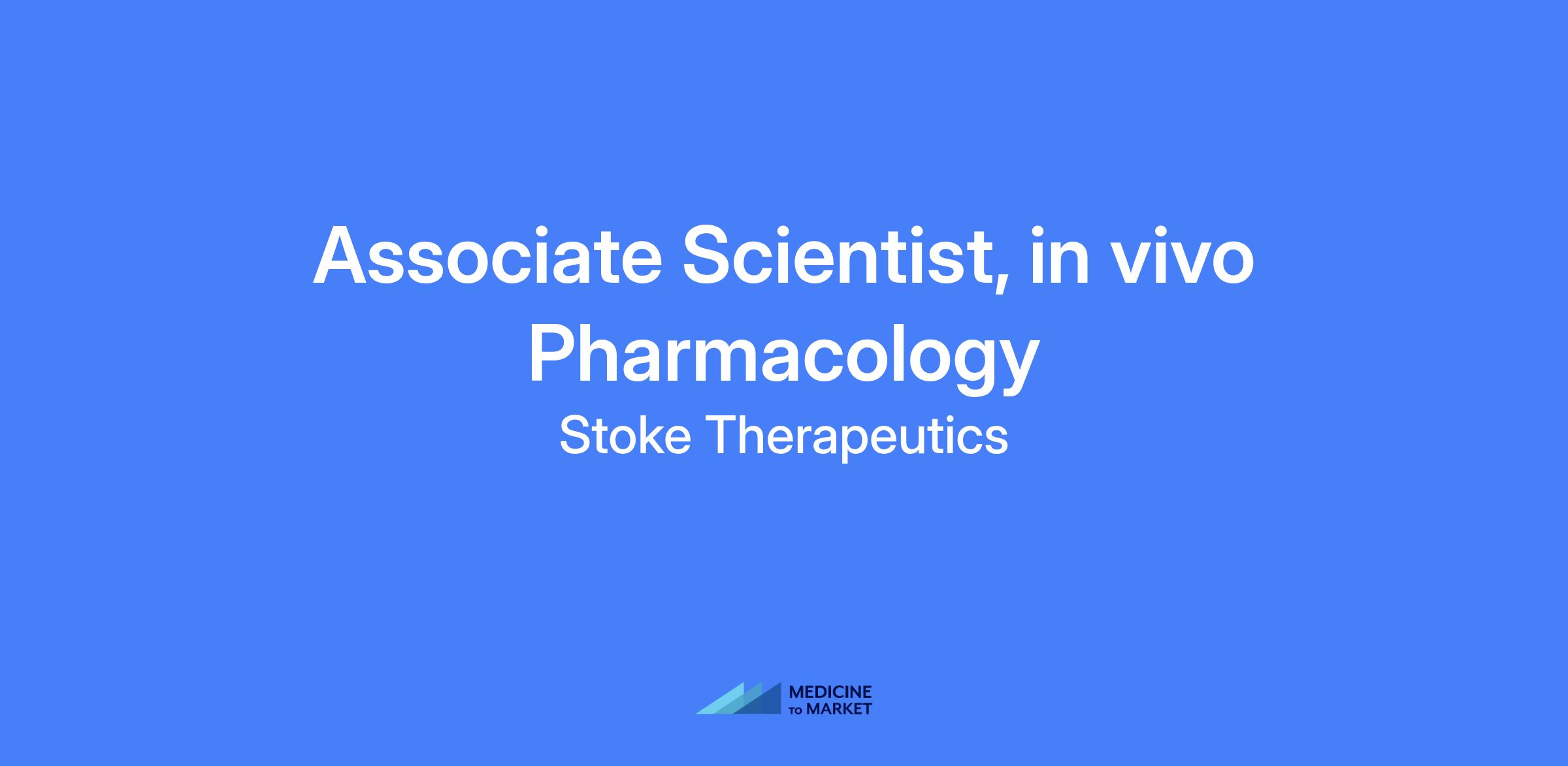 The Associate Scientist, in vivo Pharmacology, will join Stoke's In Vivo Pharmacology Department. This role offers opportunities to learn new techniques and concepts, be creative, and grow with a growing company. Based in Bedford, MA.
