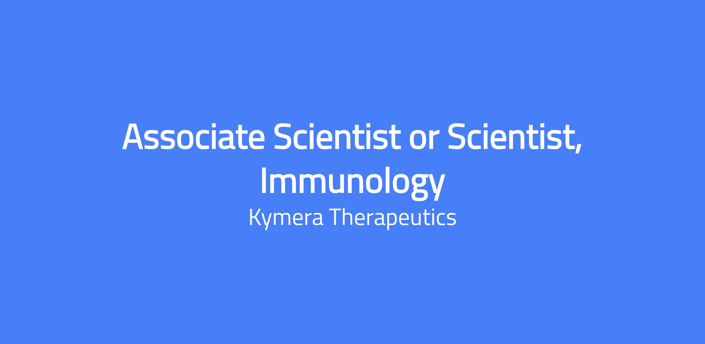Associate Scientist or Scientist, Immunology. Develop and optimize quantitative cell-based assays to support SAR and MOA studies for novel degraders, using both immortalized and primary cells. Characterize lead molecules in vitro in human and animal primary immune and tissue cell types. Communicate research findings in cross-functional project team meetings.