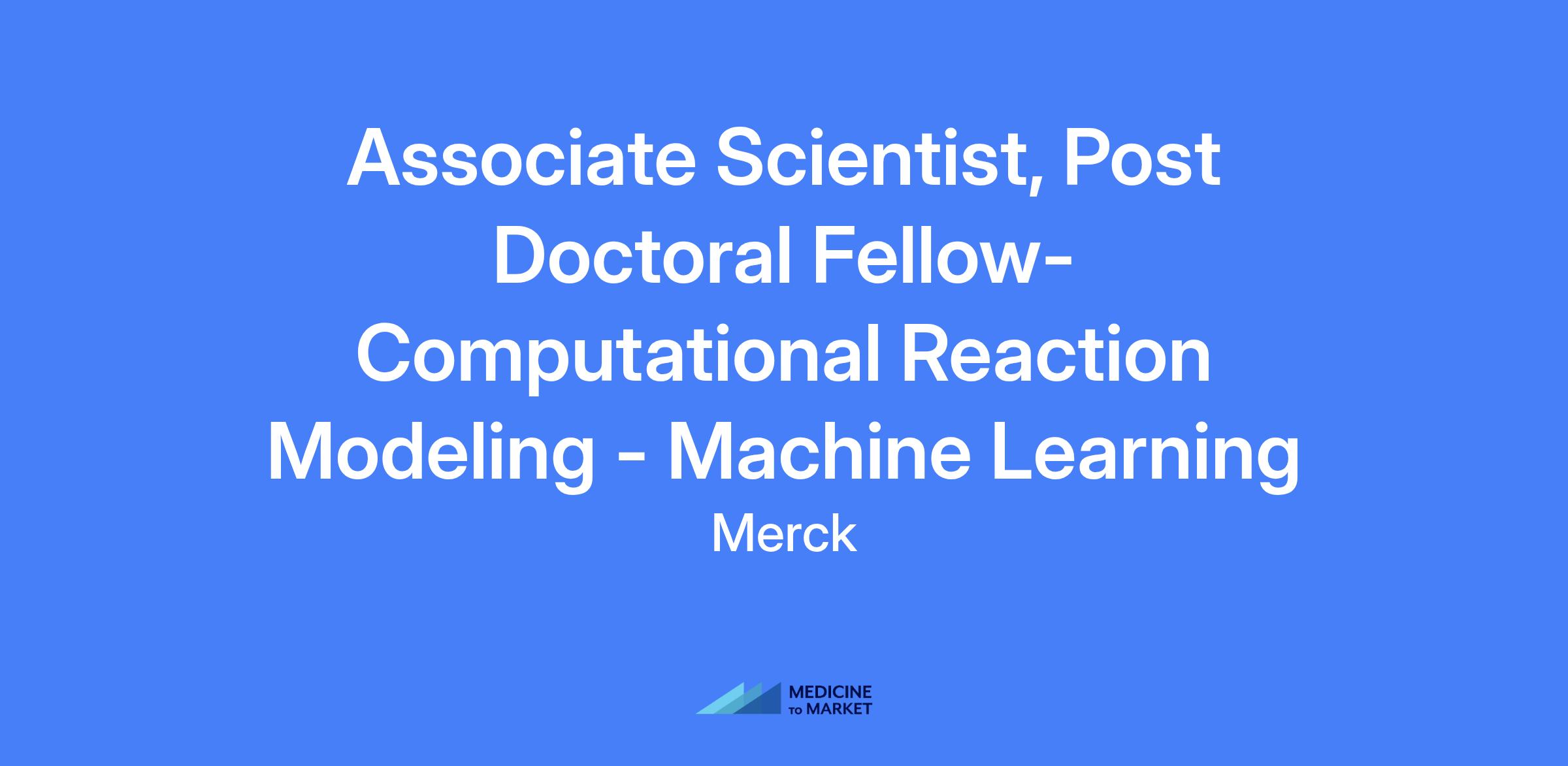 Associate Scientist, Post Doctoral Fellow - Computational Reaction Modeling - Machine Learning
