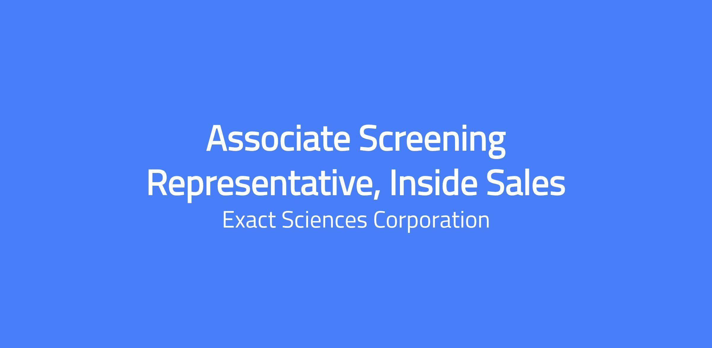 Help us change lives At Exact Sciences, weâre helping change how the world prevents, detects and guides treatment for cancer. We give patients and clinicians the clarity needed to make confident decisions when they matter most. Join our team to find a purpose-driven career, an inclusive culture, and robust benefits to support your life while youâre working to help others. Position Overview At Exact Sciences, we are cancer fighters. We are united by our mission to change lives by providing earlier, smarter answers. Through advances in cancer detection and treatment guidance, we will help eradicate the disease and the suffering it causes. The Screening Specialist, Inside Sales plays an important role in supporting the commercial organization by driving product growth through exceptional virtual selling skills and quality customer interactions to meet sales goals and deliver diagnostic solutions to the healthcare community by establishing the urgency to screen for Colorectal Cancer (CRC) and improving patient outcomes. In addition, this role will support the introduction and adoption of Cancerguard, our groundbreaking multi-cancer early detection (MCED) blood test designed to detect multiple cancers earlier in the disease continuum. This role will work closely with the assigned area team to complement the activities and sales objectives for the area. This is a fully onsite role in Madison, WI, with relocation assistance potentially available if needed. Enjoy access to amenities including a cafeteria, coffee shop, fitness center, and ergonomic workstations. We're currently targeting April 27th or June 1st start dates. Essential Duties Include, but are not limited to, the following: Generate deep insight into local healthcare ecosystems and market landscape to identify opportunities to enhance the system of care and deliver improved patient outcomes through integration of Exact Scienceâs solutions. Activate healthcare providers, clinical professionals, and health system stakeholders by investigating leads, utilizing analytical insights and business opportunities to uncover potential new business. Analyze the patient journey at various local systems of care to identify account opportunities and work with HCPs to improve clinical decision making and deliver better patient and population health outcomes in the context of EXAS future pipelines. Build a network of relationships, including clinical stakeholders and administrators, within accounts to gain insight into local healthcare systemsâ priorities and unmet needs of clinicians and patients. Diligently catalogue customer insights and information via the Customer Relationship Management (CRM) database, including point of contact (POC) information, sales call activities, market intelligence, funnel development and other data points. Synthesize data from a range of formal and informal sources to understand the evolving and dynamic local care system, leveraging available tools and resources such as Engage (CRM), Excel, Tableau and available research to make data-driven decisions on account potential and opportunities to propel the customer along the sales continuum and drive utilization of Exact Sciencesâ products. Work collaboratively with commercial team and cross functional partners to execute business imperatives and support customersâ education, resource needs and use of Exact Sciencesâ products and solutions. Develop and implement business and account plans to increase the visibility and awareness of the Companyâs products and maximize opportunities and sales growth. Create business and account plans based on strategic business goals and opportunities to drive use and acceptance of Cologuard and other Exact Sciences solutions to enhance clinical decision making and the effectiveness of the system of care. Implement business and customer plans to facilitate tailored customer engagements, which evaluate and address customer needs, and position Exact Sciencesâ products and resources as a solution. Ability to navigate and maximize all available resources including internal stakeholders and partners, marketing collateral, technological platforms, and educational resources. Inform, educate and enable target physician and stakeholder groups about Exact Sciences products and value propositions to equip them to make informed decisions about treatment choices and patient resources and highlight the importance of screening to the customer, drawing on approved clinical studies and marketing aids. Builds connections and creates interactions to support customersâ long-term collaboration with Exact Sciences and use of Exact Sciencesâ products and resources. Leads the successful implementation of account plans through collaboration and coordination with key internal stakeholders to develop and execute strategies, enhance customers satisfaction, improve patient outcomes and business opportunities for Exact Sciences. Ensures execution of targeted tactics to deliver business goals in coordination and orchestration with a wider range of internal cross-functional stakeholders, including Sales, , Marketing, Sales Operations and InternalSupport. Communicates a clear and compelling description of customer needs and opportunities to internal stakeholders and partners in order to mobilize resources and shape solutions to address current and future customer needs. Ensures that the team conducts business to the highest ethical and professional standards, consistent with Extract Sciences guidelines and policies and regulatory requirements and upholding the company mission and core values of accountability, innovation, integrity, quality and teamwork. Ability to quickly pivot to evolving strategic imperatives based on local business needs and insights Ability to sell virtually using remote sales tools & resources. Enter new customer data and update changes to existing accounts in the customer database (CRM). Make telephonic and virtual sales presentations to m