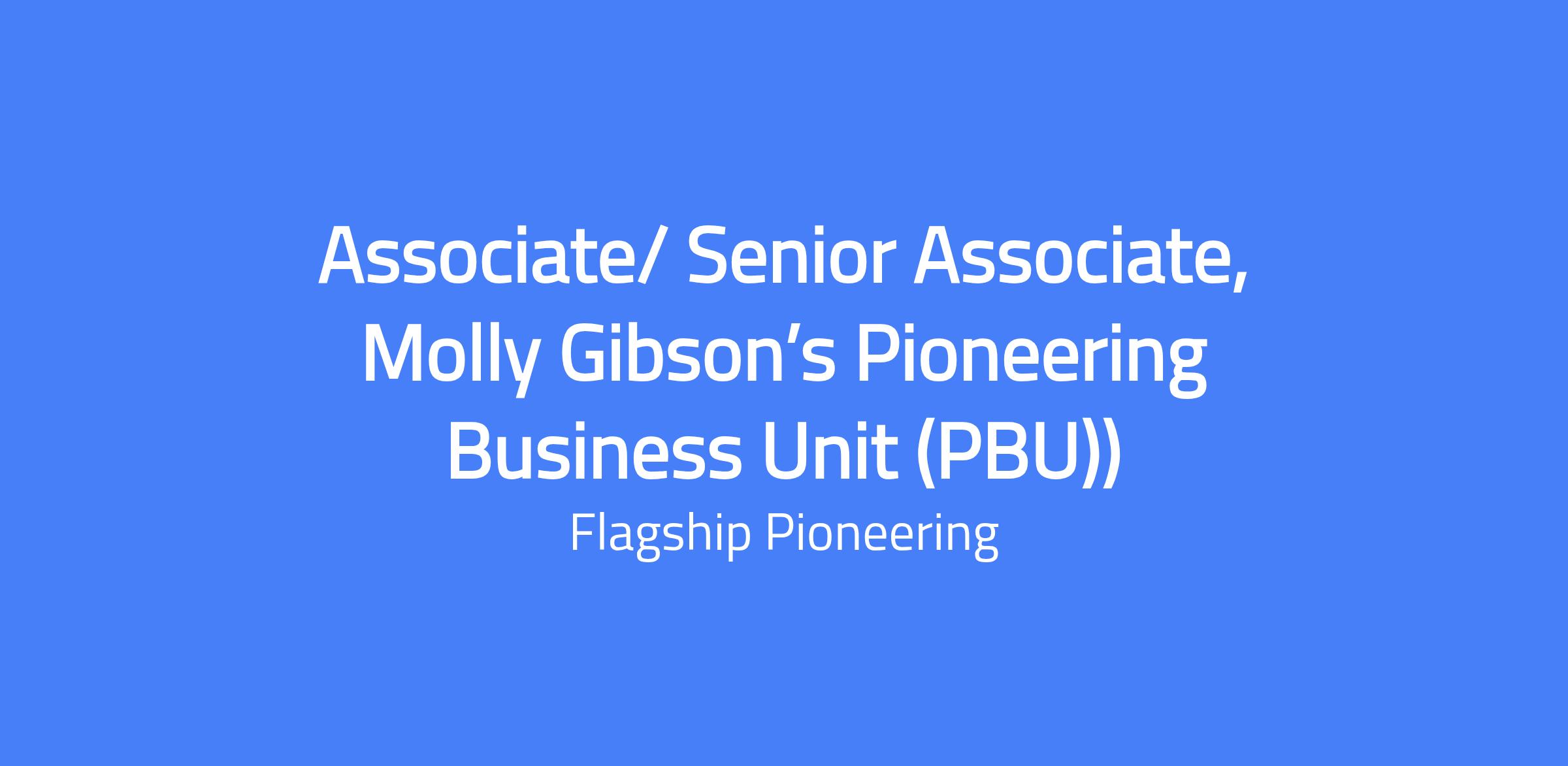 As an Associate or Senior Associate at Flagship Pioneering in Molly Gibson’s Pioneering Business Unit (PBU), you will ideate, research, and refine novel venture hypotheses, validate key underlying unknowns of biology or technology and transition pressure-tested ideas into building a NewCo around the science. You will help drive every facet of company origination from the early stages including identification and recruitment of critical partners and advisors, establishment of foundational IP, hiring and leadership of the early scientific team, and establishment of working norms and culture for the team. In this role you will partner with stakeholders across the broader Flagship ecosystem to bring the full experience of Flagship to support your companies. A successful candidate will become the expert on the foundational science of the company, frame and clearly communicate the strategy, and translate that strategy into a plan and lead operationalization of that plan alongside a Principal or Partner on the venture creation team.