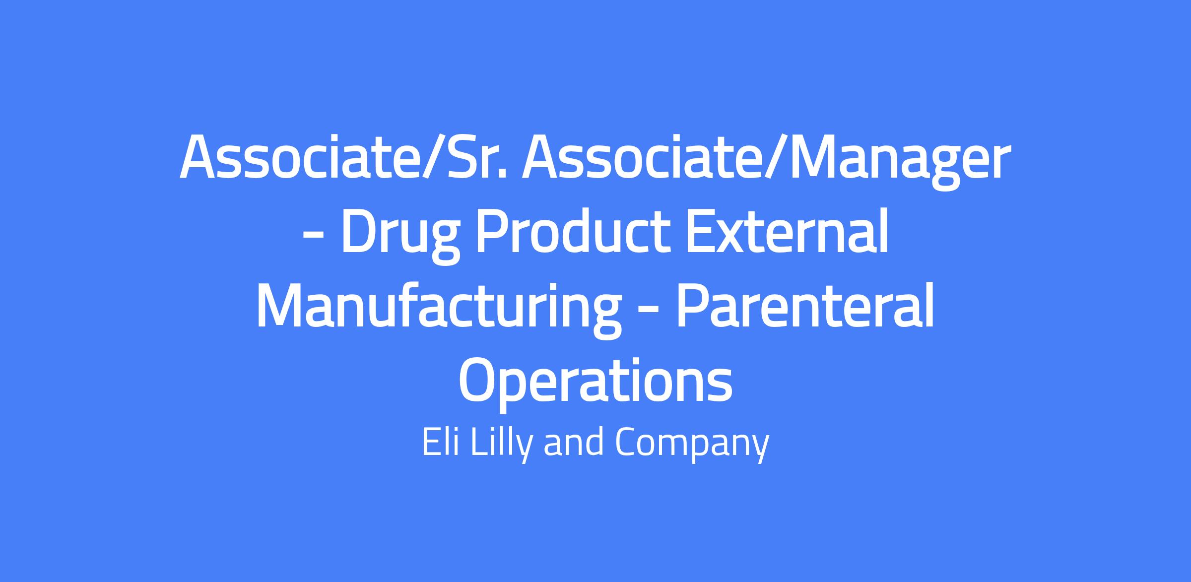 Associate/Sr. Associate/Manager - Drug Product External Manufacturing - Parenteral Operations