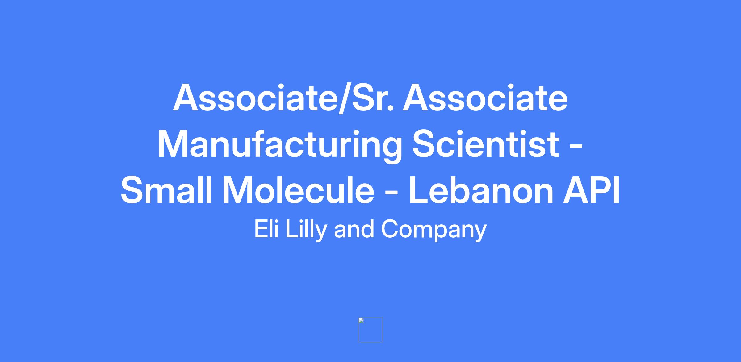 Associate/Sr. Associate Manufacturing Scientist - Small Molecule - Lebanon API. The Manufacturing Scientist is part of the TSMS (Technical Services/Manufacturing Science) team that provides the technical support required to achieve reliable and compliant manufacturing of API molecules. This role will be part of the Manufacturing Process Team for its respective area, providing daily oversight to ensure safe and reliable supply of medicines. The Manufacturing Scientist executes technical projects to improve and optimize process control, yield, purity, and/or productivity. The role includes setting up and executing experiments at laboratory scale and conducting research on manufactured product for process improvements and troubleshooting in the technical services and manufacturing sciences laboratory.