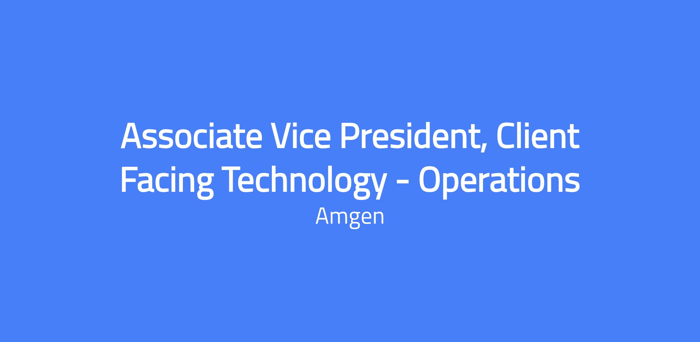 Associate Vice President, Client Facing Technology - Operations at Amgen leading the strategic direction, deployment, and enhancement of client-facing technologies and information systems to boost operational efficiency, enable data-informed decisions, and foster digital transformation. Ensures robust security, compliance, and scalability while redefining the client experience to be more integrated and business-focused.
