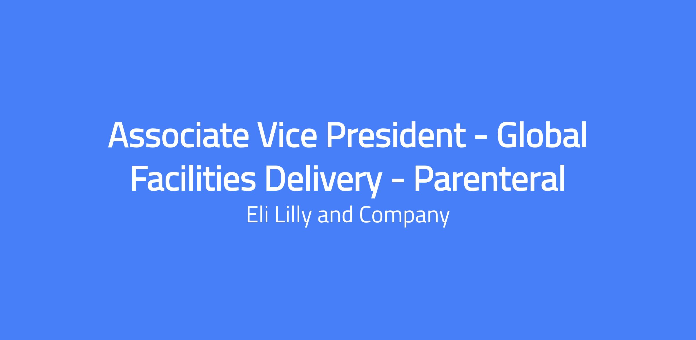 Associate Vice President - Global Facilities Delivery - Parenteral