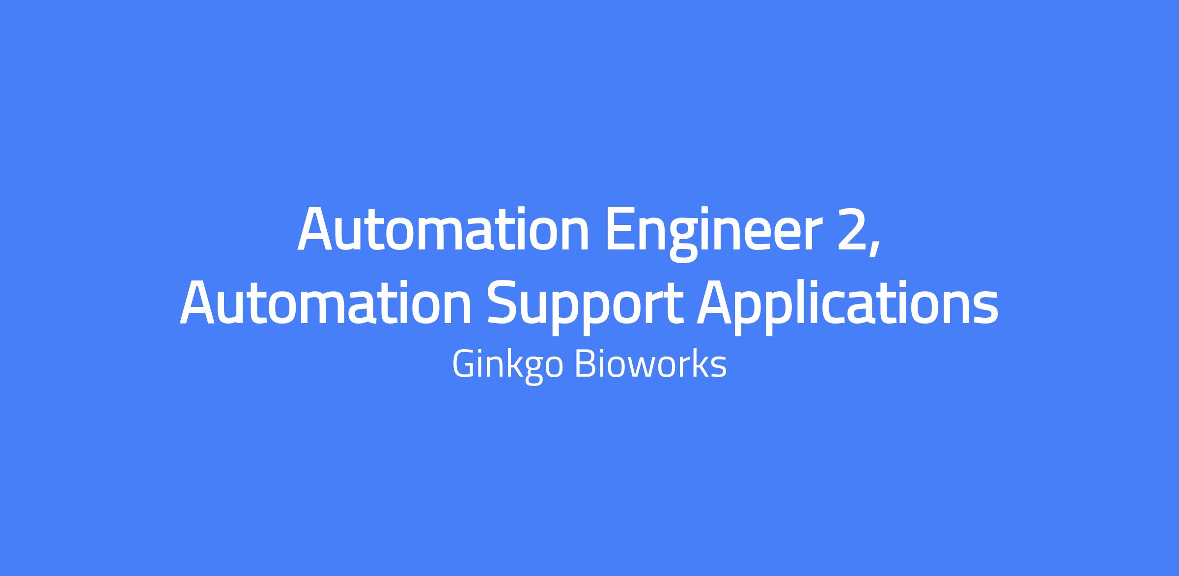 Job Title: Automation Engineer 2, Support Applications Engineering