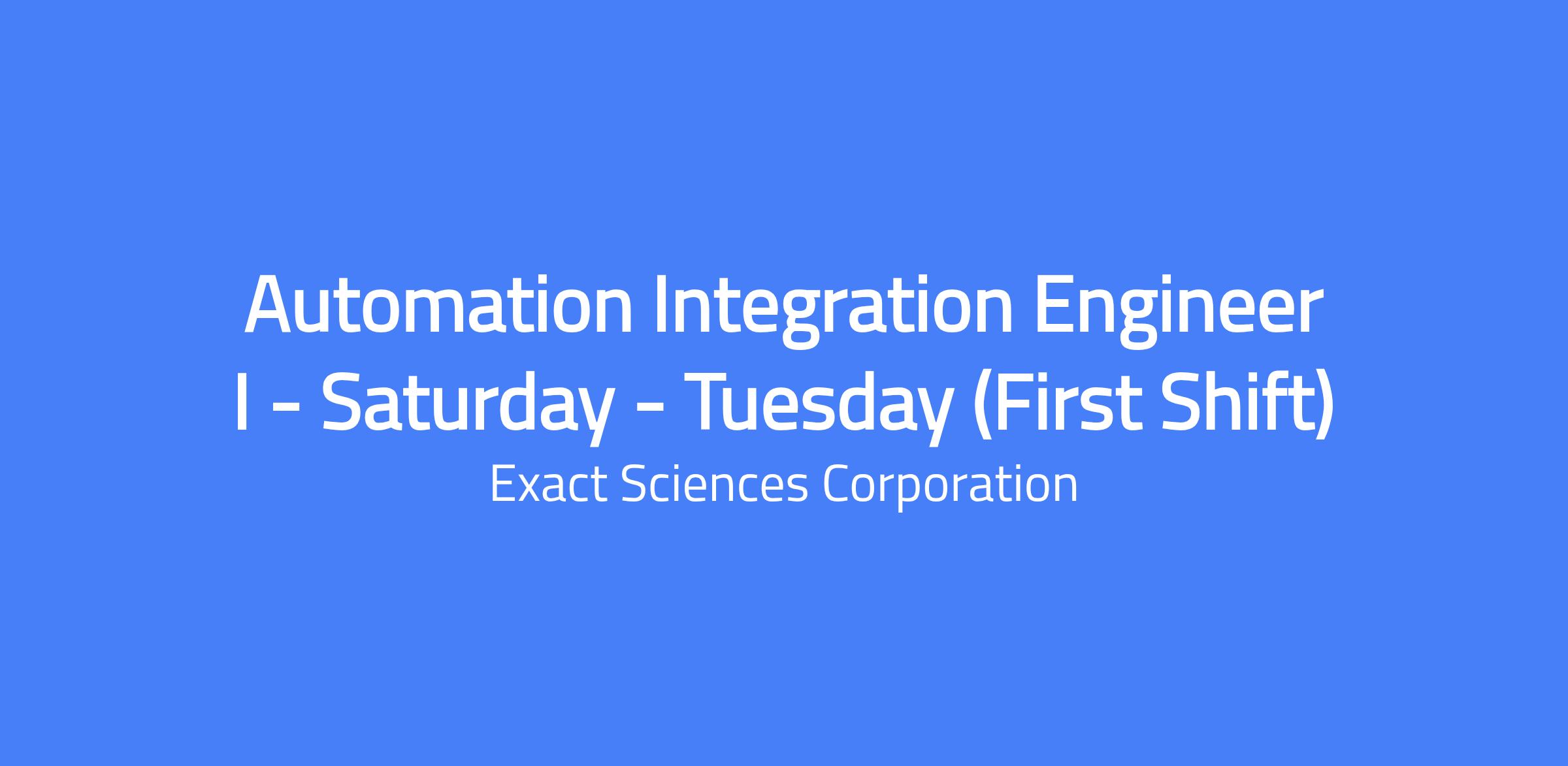 Help us change lives At Exact Sciences, weâre helping change how the world prevents, detects and guides treatment for cancer. We give patients and clinicians the clarity needed to make confident decisions when they matter most. Join our team to find a purpose-driven career, an inclusive culture, and robust benefits to support your life while youâre working to help others. Position Overview The Engineer I is an entry-level escalation engineer who supports recurring issue resolution across laboratory automation platforms. While this role is not primarily responsible for routine installations or preventive maintenance, it may assist when required. Core responsibilities include responding to escalated technical support cases from Laboratory Service Engineers, executing well-defined troubleshooting protocols, and contributing to uptime restoration through mechanical repair, basic system diagnostics, and root cause documentation. The Engineer I collaborates with cross-functional teams to support system reliability, contributes to service workflow enhancements, and actively builds proficiency in regulated environments involving PLCs, vison platforms, robotics. This position will be Saturday- Tuesday working first shift hours (some flexibility on start time) working 4 days a week 10-hour shift schedule. Essential Duties Include, but are not limited to, the following: Develop processes and procedures for automation installations, qualifications, preventative maintenance and troubleshooting. Exercise independent judgment in decision-making when troubleshooting and prioritizing tasks. Exercise discretion in selecting tools, frameworks, and methodologies to obtain diagnostic information and reporting results to the customer. Authority to prioritize work and adapt strategies to meet organization and team goals. Perform investigations on recurring equipment issues using historical diagnostic protocols and gathering relevant service data. Participate in corrective action reviews to understand how recurring problems are resolved and prevented. Document service learnings and share updates with Lab Service Engineers to support knowledge continuity and reduce future escalations. Triage incoming requests to provide front-line support for stand-alone, custom laboratory automation Troubleshoot standard equipment issues; escalate unfamiliar or complex issues appropriately. Receive and document incoming customer communications and manage service escalations to resolution within established timelines. Provide exceptional, customer-centric technical support by investigating issues, reproducing failures, and identifying root causes. Analyze log files and data to identify patterns, troubleshoot errors, and support continuous improvement of service workflows. Create and interpret data queries to support investigations and document findings, resolutions, and improvement opportunities. Serve as the primary liaison for assigned equipment and coordinate vendor escalations as needed. Actively identify and initiate improvements to simplify and automate service processes. Support the transfer of new hardware and products to/between laboratories, participating in planning, testing, and technical validation. Represent the service function in cross-functional meetings and development initiatives; fulfill technical transfer tasks and action items. Build strong customer relationships and collaborate effectively with internal stakeholders across technical support, development, quality, and IT. Contribute to a positive and inclusive team environment through active listening, open communication, curiosity, and a commitment to shared goals. Maintain technical knowledge of instrumentation and regulatory expectations (e.g., CAP/CLIA); support audit readiness and equipment compliance. Demonstrate strong mechanical and analytical aptitude to resolve equipment issues and support lab operations. Prioritize and plan work independently, managing competing tasks with a sense of urgency and accountability. Uphold the companyâs mission and values through integrity, innovation, and commitment to quality. Support and comply with the companyâs Quality Management System (QMS) and relevant safety and regulatory requirements (e.g., OSHA, CLIA). Work Environment & Physical Requirements Ability to work seated and standing for approximately 50% of the working day each. Ability to work designated schedule, including travel up to 30% of working time (may include overnight/weekend travel). Ability to lift up to 25 pounds (~5% of the time). Ability to work on a mobile device, tablet, or computer for up to 90% of the working day. Ability to use fine and gross motor skills for equipment troubleshooting and maintenance. Ability to comply with personal protective equipment (PPE) requirements. Ability and means to travel between local Madison locations. Occasional evening or weekend work may be required. Minimum Qualifications Bachelorâs Degree in a field related to essential duties; or Associates Degree and 2 years of relevant experience; or High School Diploma or General Education Degree (GED) and 4 years of relevant experience. 3 years of experience in an engineering or technical support role. 1 year of experience in industrial automation maintenance. Demonstrated understanding of clinical lab regulations. Possesses advanced knowledge of engineering theories, practices and procedures and applies this knowledge and skills to complete assignments. Proficient in Microsoft Office including Word, Excel, PowerPoint, and Outlook. Demonstrated ability to perform the Essential Duties of the position with or without accommodation. Applicants must be currently authorized to work in country where work will be performed on a full or part-time basis. We are unable to sponsor or take over sponsorship of employment visas at this time. Preferred Qualifications Bachelorâs Degree in Engineering. 2+ years of experience in engineering, technical support, or related fields