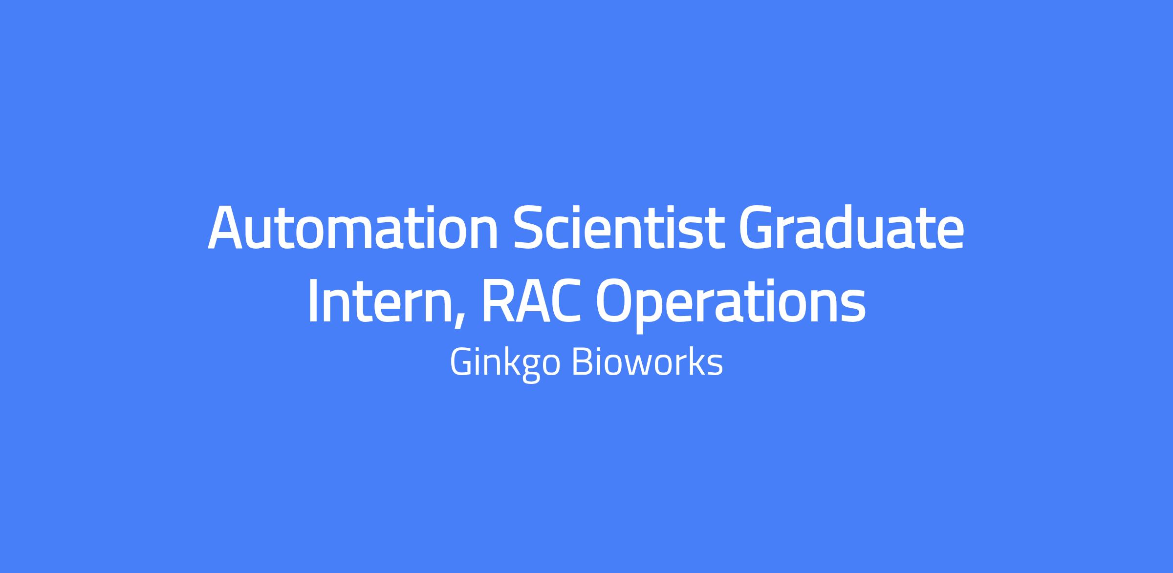 About the Role: Ginkgo Bioworks is deploying a massive fleet of Reconfigurable Automation Cells (RACs)—modular, mobile robotic units that snap together like LEGOs to form an autonomous lab. We are looking for an Automation Scientist Intern to be the hands-on force behind this fleet. You will learn how to load, operate, take down, and troubleshoot protocol runs on the most advanced lab automation hardware in the world, pushing our "Nebula" frontier lab towards autonomous operation.