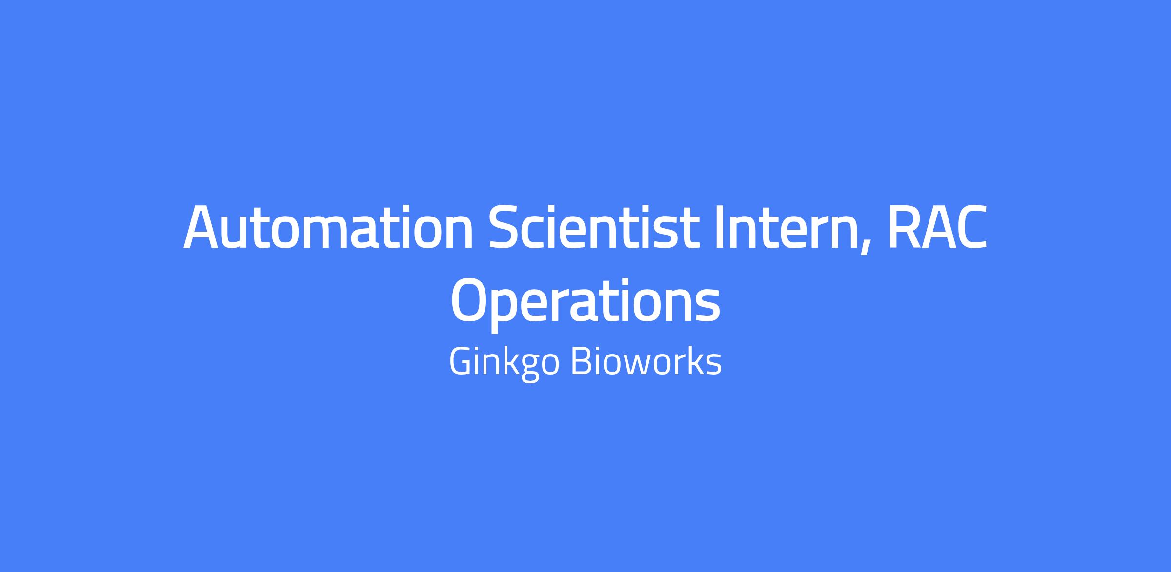 About the Role: Ginkgo Bioworks is deploying a massive fleet of Reconfigurable Automation Cells (RACs)—modular, mobile robotic units that snap together like LEGOs to form an autonomous lab. We are looking for an Automation Scientist Intern to be the hands-on force behind this fleet. You will learn how to load, operate, take down, and troubleshoot protocol runs on the most advanced lab automation hardware in the world, pushing our "Nebula" frontier lab towards autonomous operation.