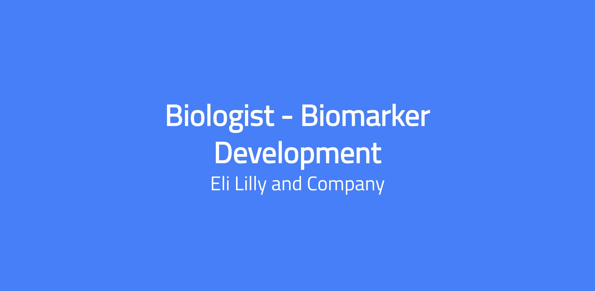 Biologist - Biomarker Development at Lilly. An in vitro biologist will join the Biomarkers Unit to support preclinical characterization and biomarker assay development across a broad range of therapeutic platforms, collaborating with project leads and senior scientists to translate biomarkers into clinical applications. The role involves working with a diverse team of researchers and external partners to advance therapies for neurodegenerative disease targets.