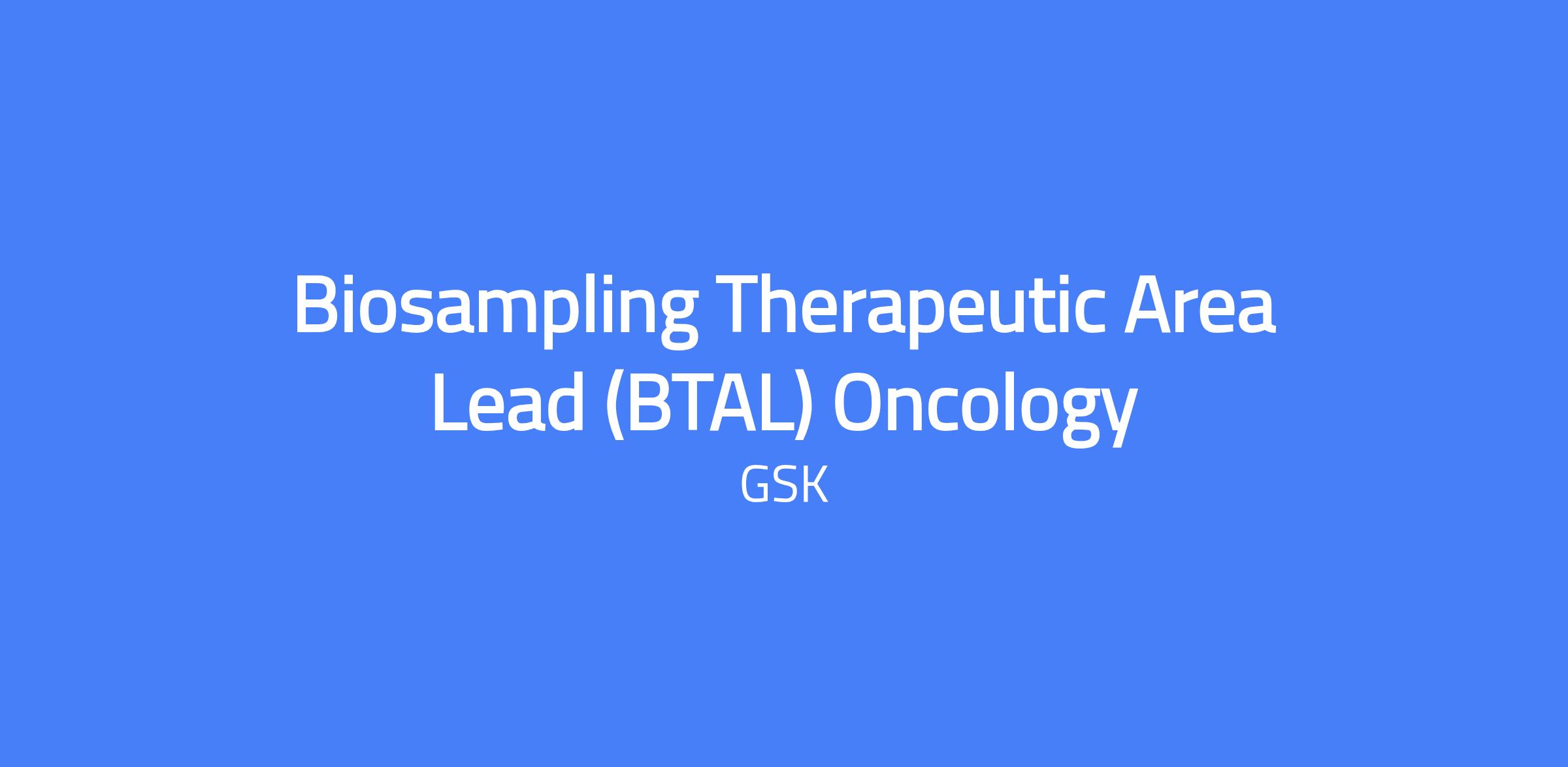 Job Title: Biosampling Oncology Therapeutic Area Leader (BTAL)