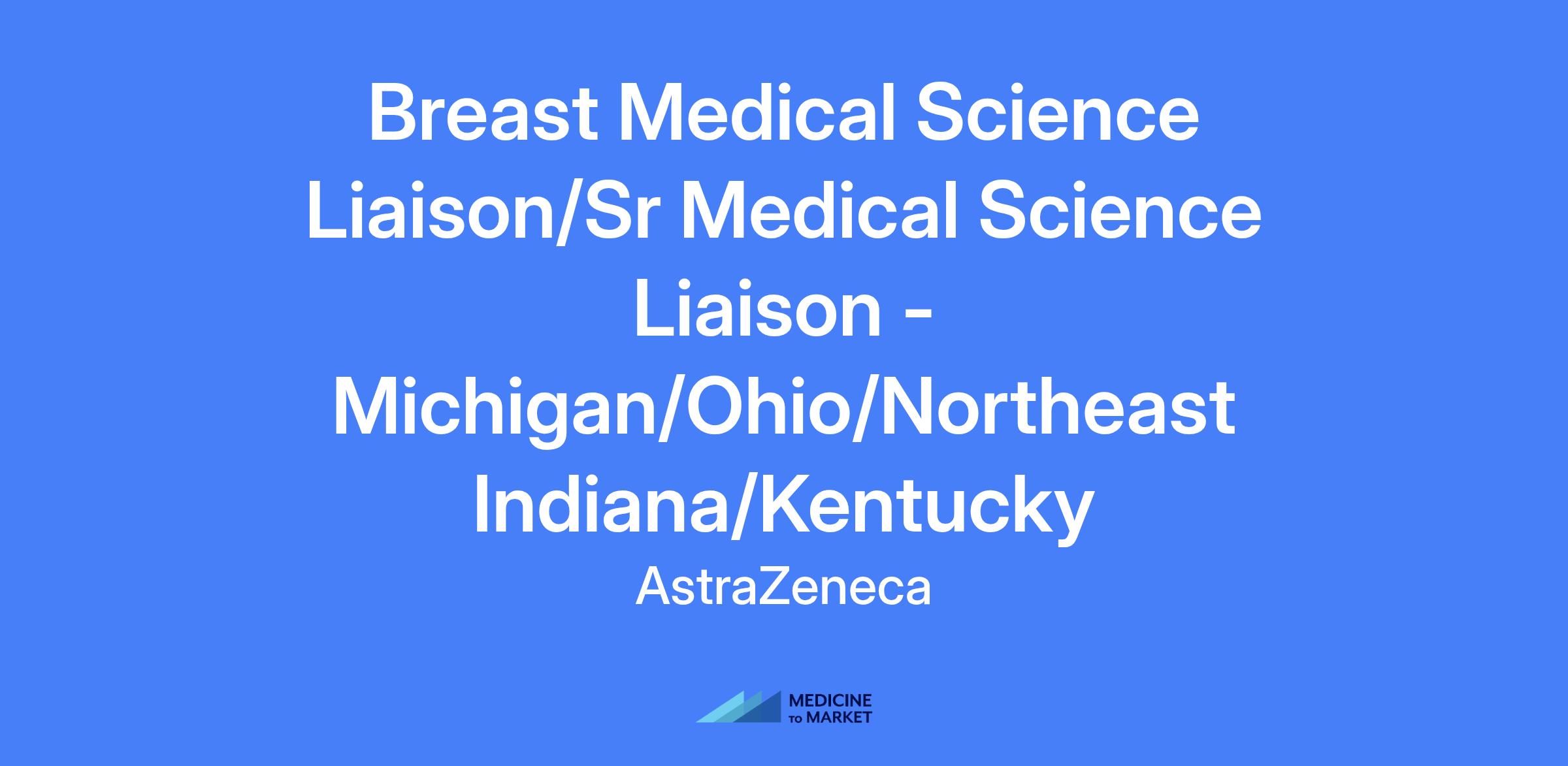 Medical Science Liaison (MSL) or Senior MSL for Breast Oncology, serving as the local medical voice in the disease area and building a local medical strategy to improve patient care and outcomes in the territory. The MSL is an established field-based professional with extensive scientific, clinical, and therapeutic area expertise responsible for providing medical and scientific support for AstraZeneca's oncology products, new indications for current products, and compounds in development. Territory includes Michigan, Ohio, Northeast Indiana, and Kentucky.
