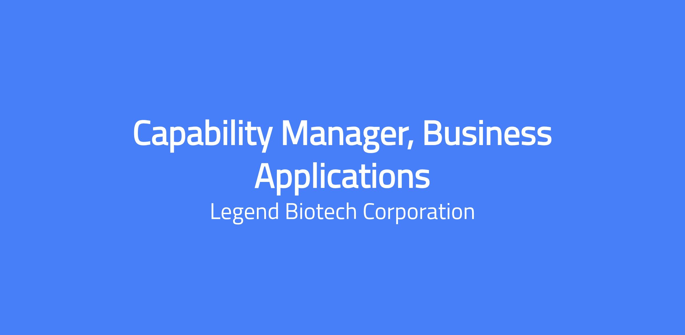 Legend Biotech is seeking a Capability Manager, Business Applications as part of the IT team based in Somerset, NJ.