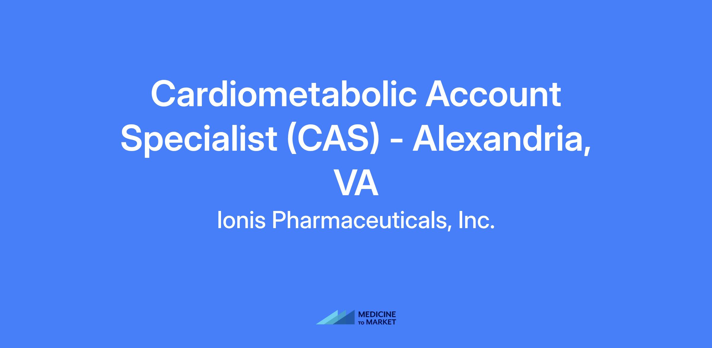 The Cardiometabolic Account Specialist (CAS) is a field-based role responsible for the launch of Ionisβs first wholly owned commercial product within their respective territory and will possess a deep understanding of the healthcare market and the Familial Chylomicronemia Syndrome (FCS) community, including the key customers and accounts treating cardiovascular and lipid related diseases. In this role, the CAS will be responsible for driving performance and working with cross-functional partners and external customers to support Ionis goals and come together to help patients in need.