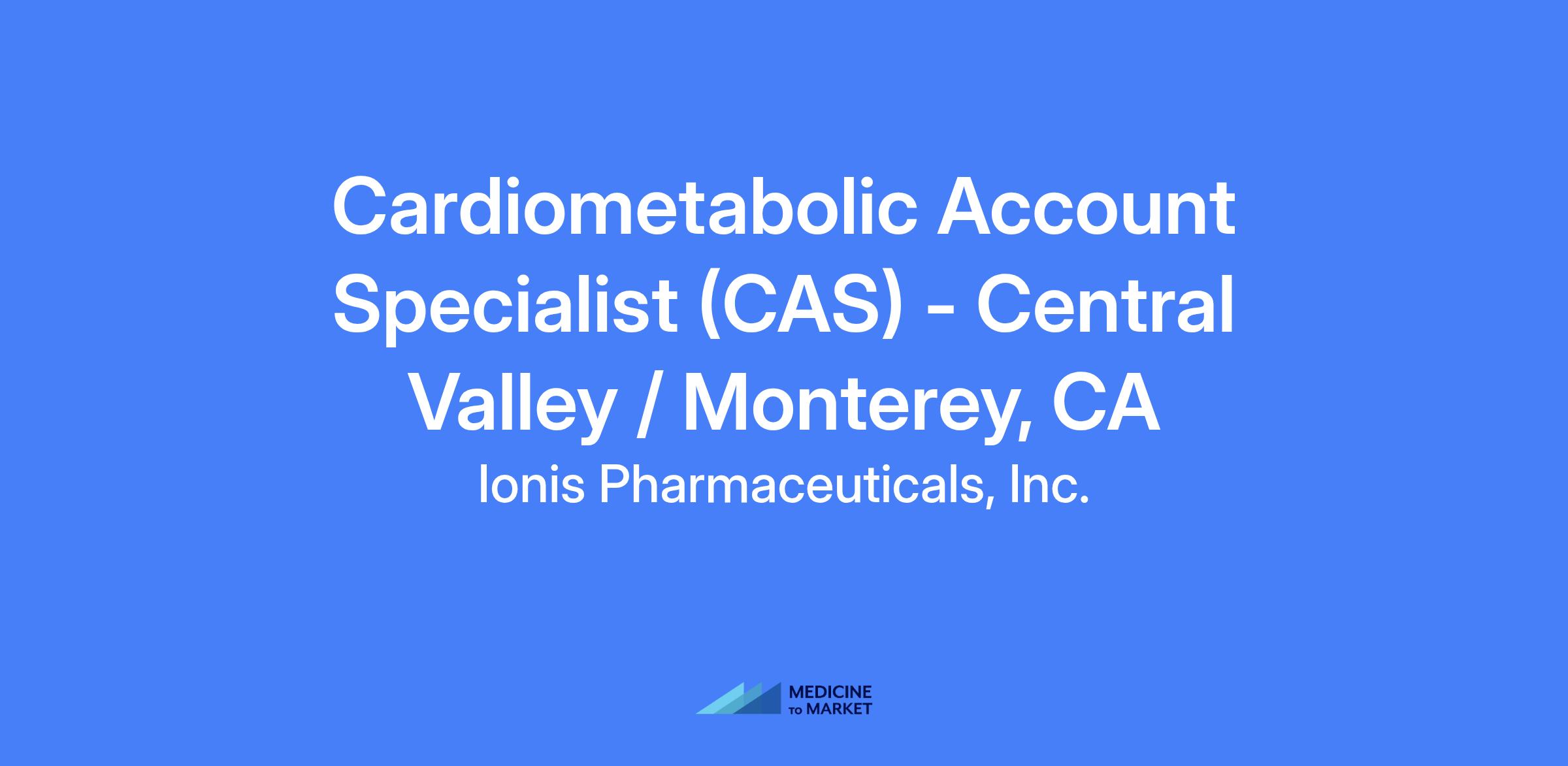 The Cardiometabolic Account Specialist (CAS) is a field-based role responsible for the launch of Ionisβs first wholly owned commercial product within their respective territory and will possess a deep understanding of the healthcare market and the Familial Chylomicronemia Syndrome (FCS) community, including the key customers and accounts treating cardiovascular and lipid related diseases. In this role, the CAS will be responsible for driving performance and working with cross-functional partners and external customers to support Ionis goals and come together to help patients in need.