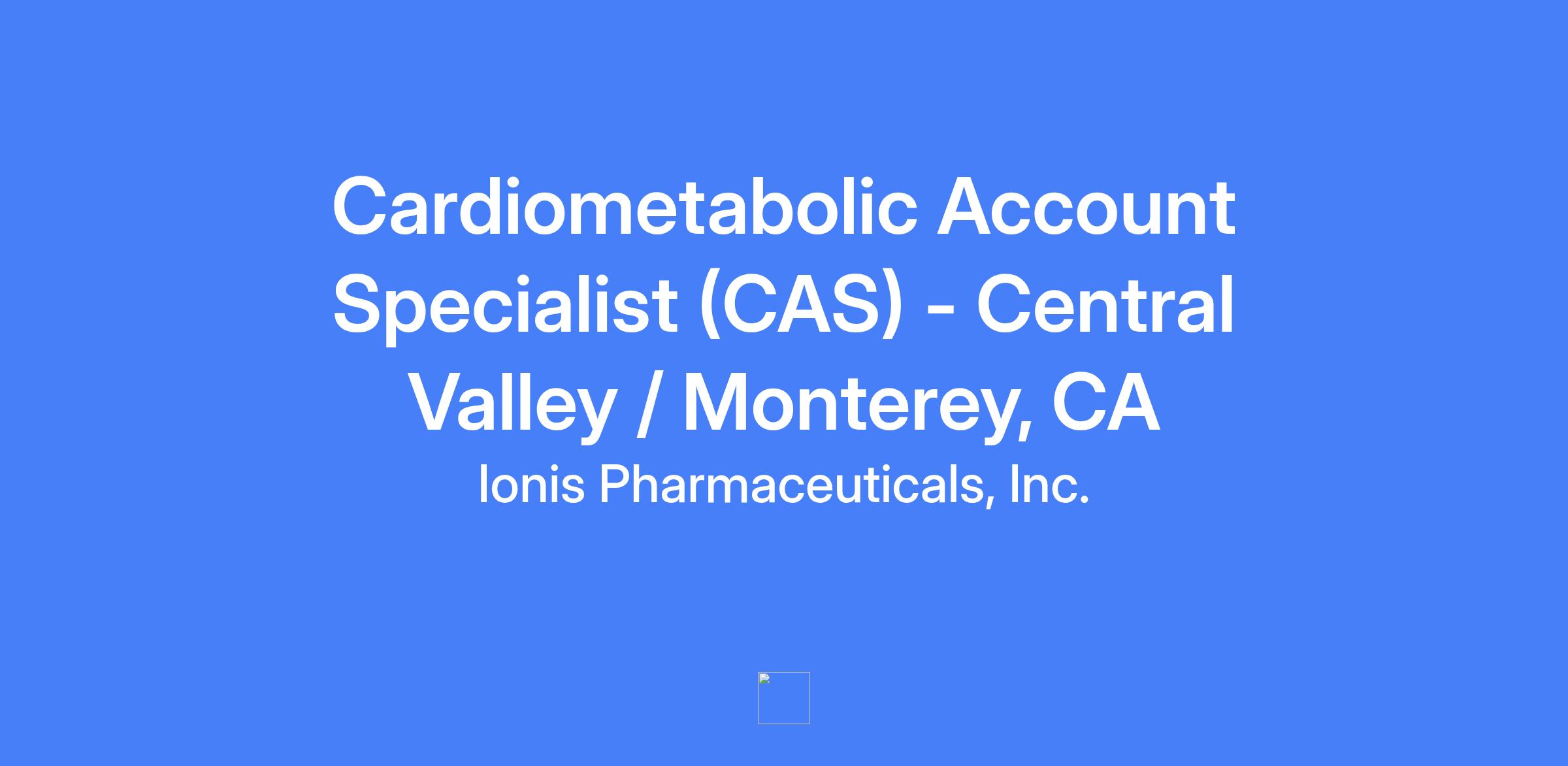 The Cardiometabolic Account Specialist (CAS) is a field-based role responsible for the launch of Ionisβs first wholly owned commercial product within their respective territory and will possess a deep understanding of the healthcare market and the Familial Chylomicronemia Syndrome (FCS) community, including the key customers and accounts treating cardiovascular and lipid related diseases. In this role, the CAS will be responsible for driving performance and working with cross-functional partners and external customers to support Ionis goals and come together to help patients in need.