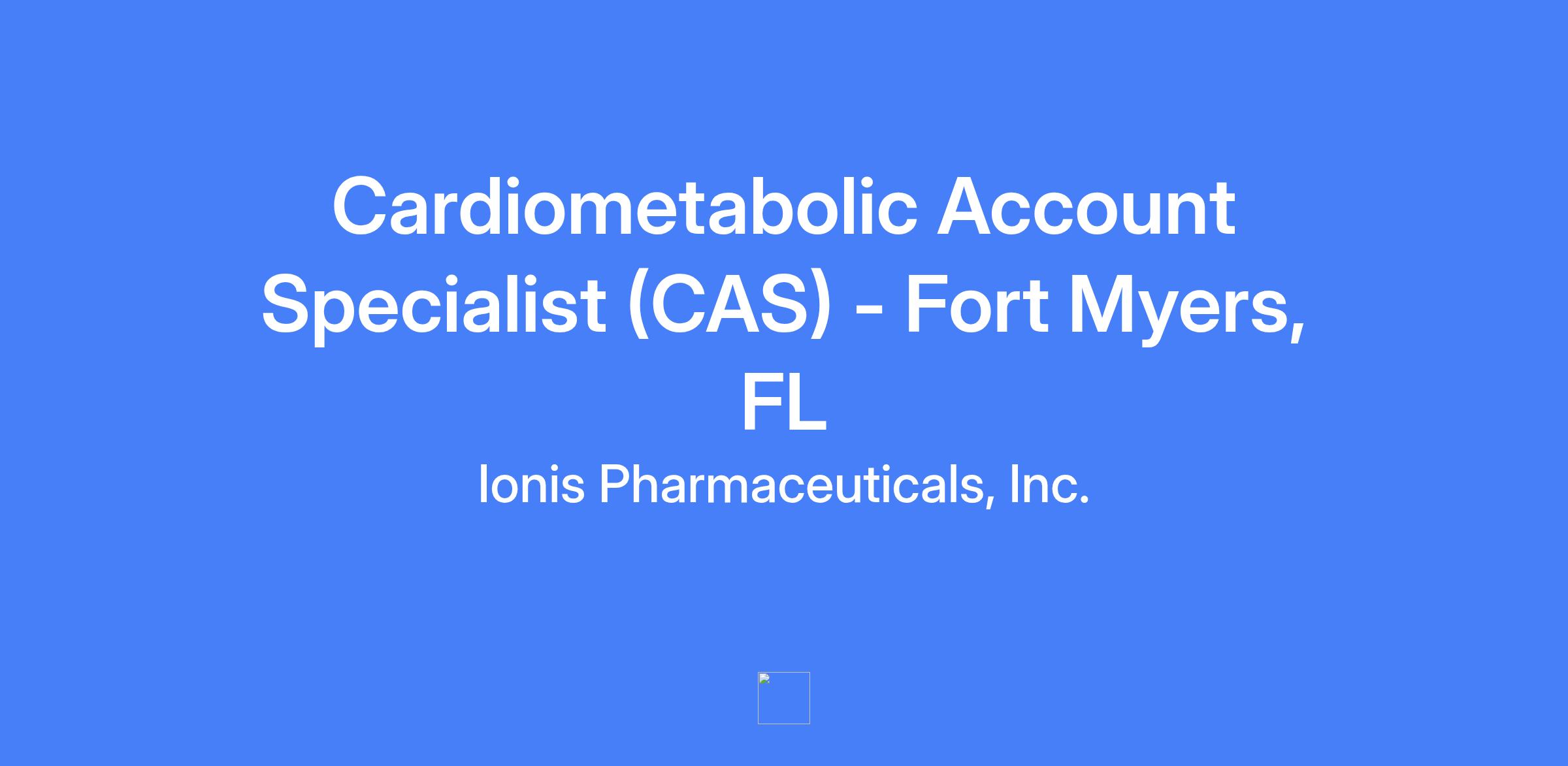 Cardiometabolic Account Specialist (CAS) โ Fort Myers, FL. The CAS is a field-based role responsible for the launch of Ionisโs first wholly owned commercial product within their territory, with a deep understanding of the healthcare market and the Familial Chylomicronemia Syndrome (FCS) community. The role drives performance and collaborates with cross-functional partners and external customers to support Ionis goals and help patients in need.