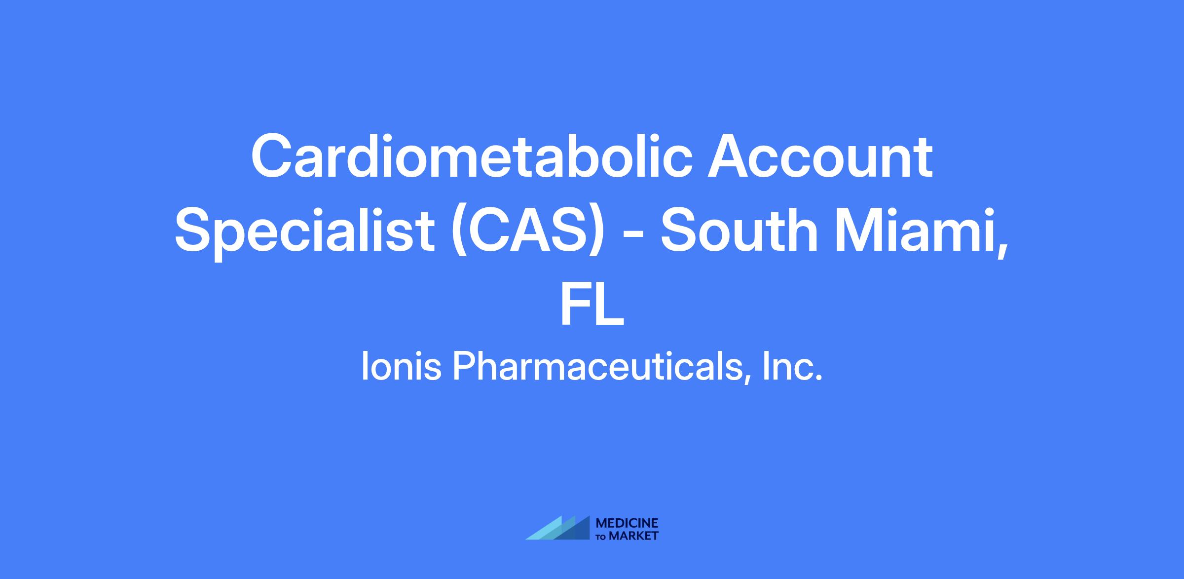 Cardiometabolic Account Specialist (CAS) โ South Miami, FL. The CAS is a field-based role responsible for the launch of Ionisโs first wholly owned commercial product within their respective territory and will possess a deep understanding of the healthcare market and the Familial Chylomicronemia Syndrome (FCS) community, including the key customers and accounts treating cardiovascular and lipid related diseases.