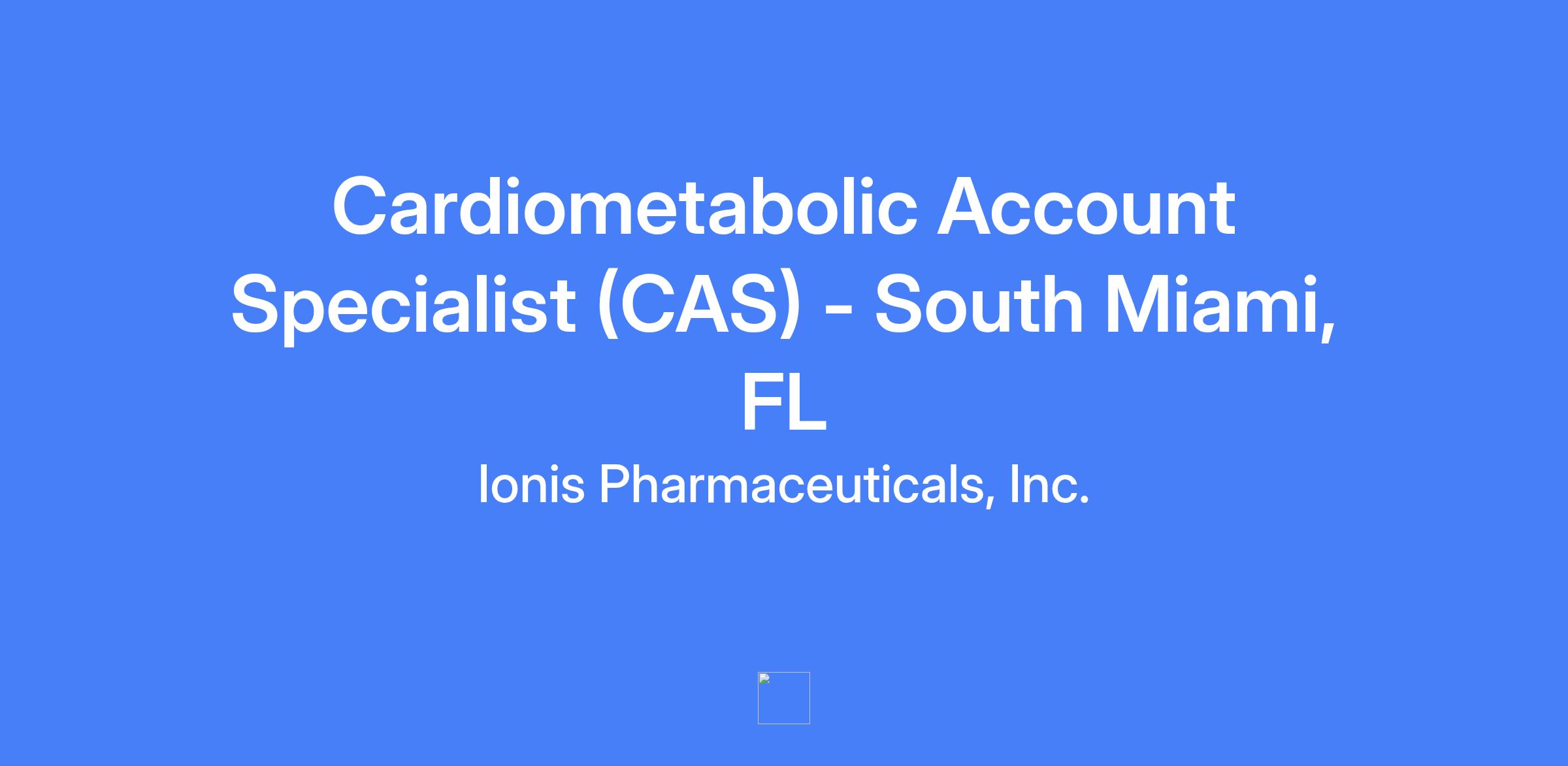 Cardiometabolic Account Specialist (CAS) โ South Miami, FL. The CAS is a field-based role responsible for the launch of Ionisโs first wholly owned commercial product within their respective territory and will possess a deep understanding of the healthcare market and the Familial Chylomicronemia Syndrome (FCS) community, including the key customers and accounts treating cardiovascular and lipid related diseases.