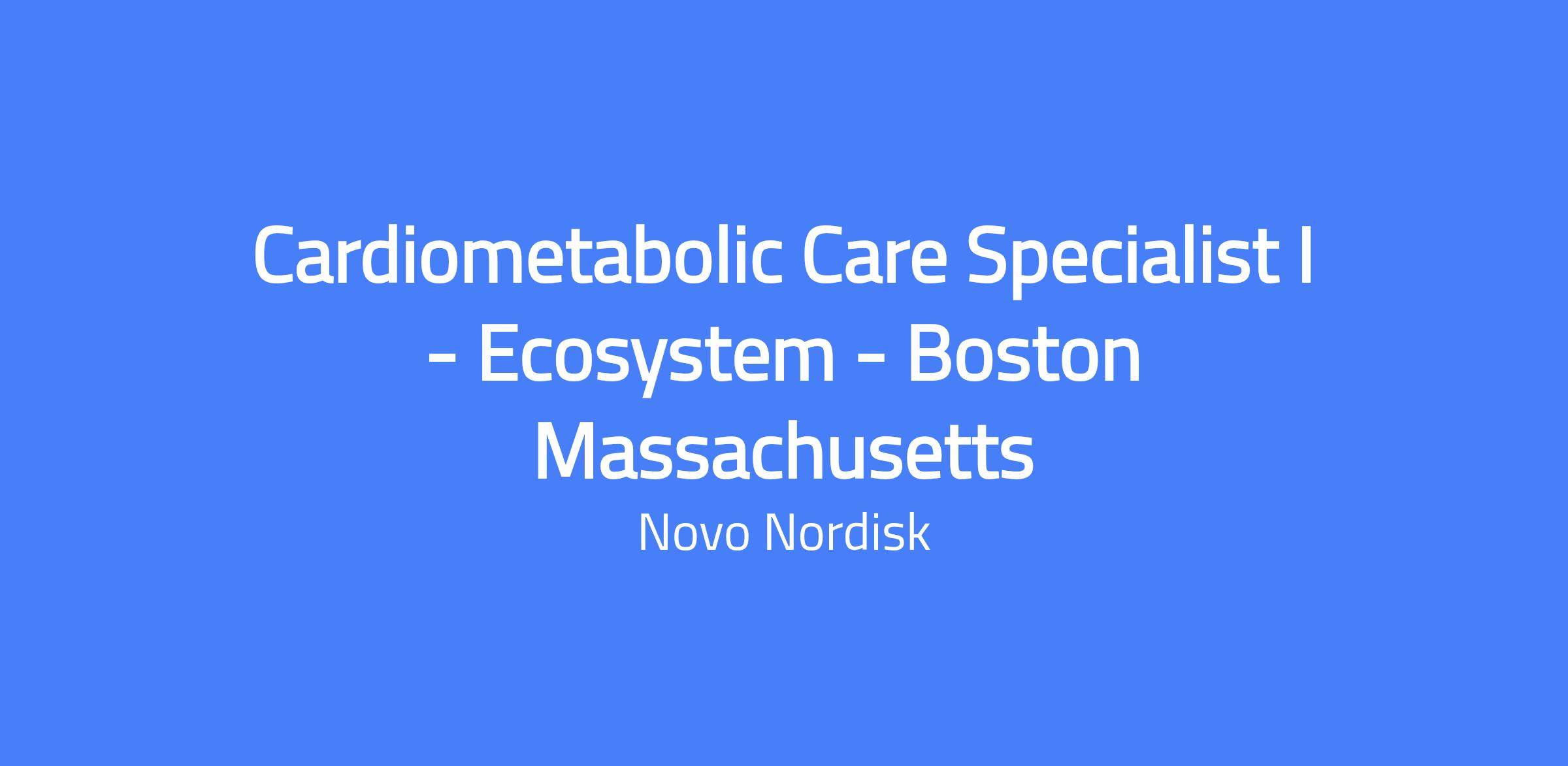 Cardiometabolic Care Specialist I - Ecosystem is the primary Novo Nordisk representative in a defined geographic area, including Boston, Massachusetts. You will engage with health systems, key academic centers, specialists, primary care providers, and other stakeholders to promote the cardiometabolic product portfolio and drive sales. The role aims to optimize sales, establish Novo Nordisk as a leader in cardiometabolic care, assess customer needs, and recommend suitable products and services in line with approved guidelines.