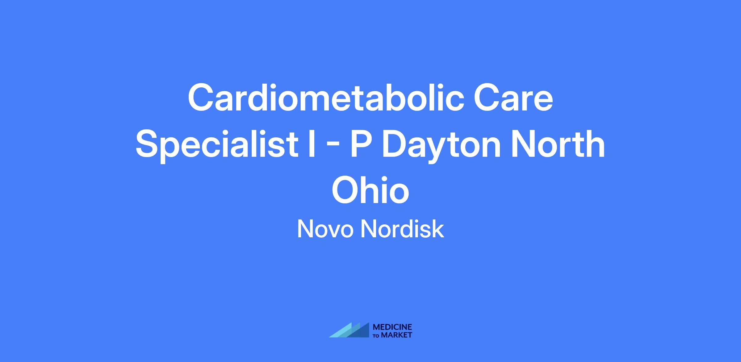 Cardiometabolic Care Specialist I - P Dayton North Ohio. Assumes responsibility for achieving sales goals by implementing marketing and sales strategies aimed at effectively selling and promoting Novo Nordisk's portfolio of products to healthcare professionals and other office staff.