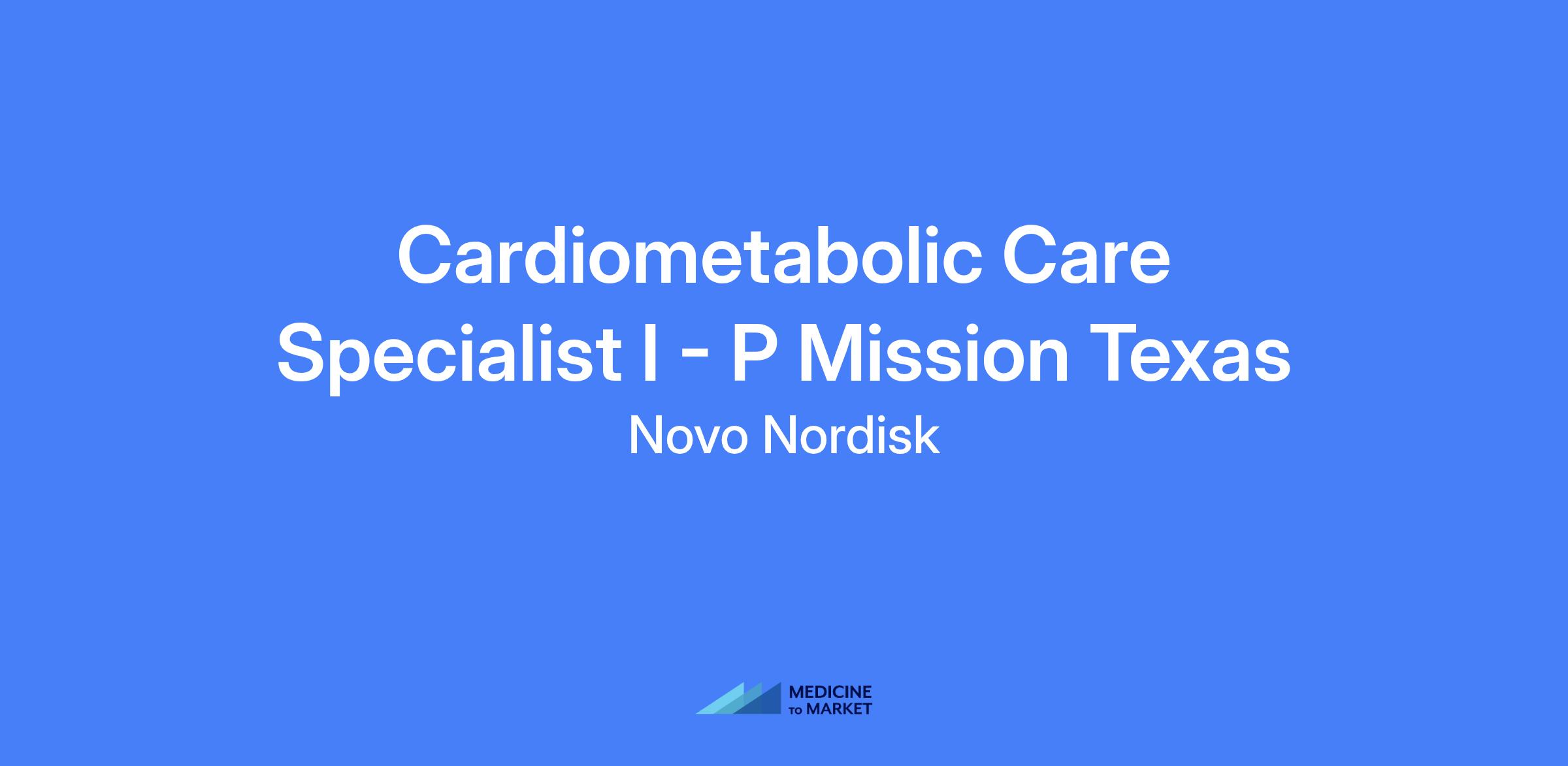 Cardiometabolic Care Specialist I - P Mission Texas. Assumes responsibility for achieving sales goals by implementing marketing and sales strategies aimed at effectively selling and promoting Novo Nordisk's portfolio of products to HCPs and other office staff.