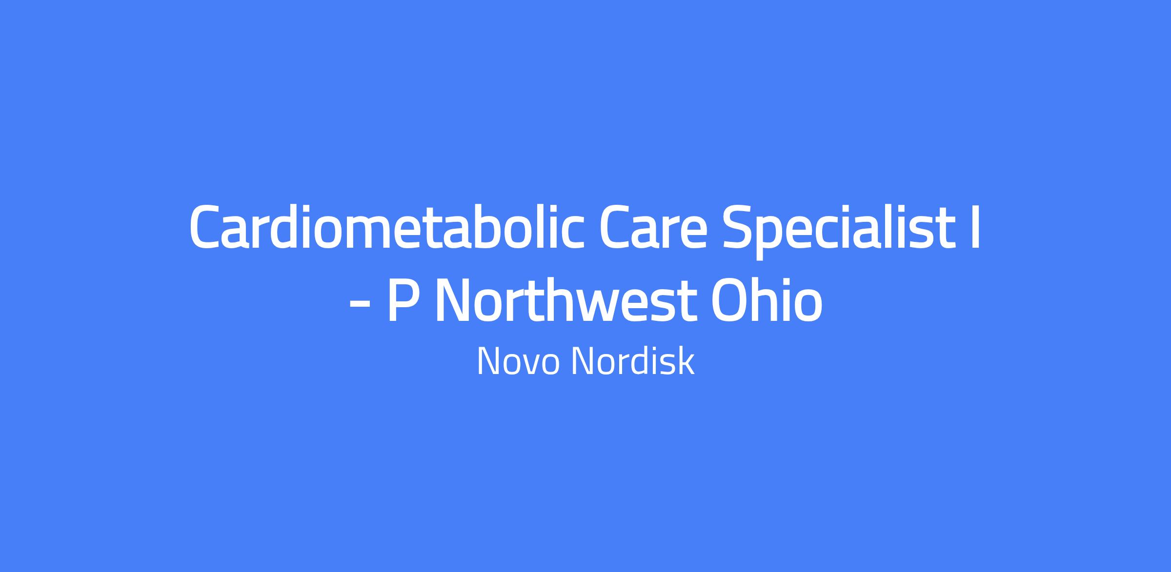 Cardiometabolic Care Specialist I - P Northwest Ohio. The Cardiometabolic Care Sales Team leads US sales efforts for Novo Nordisk’s cardiometabolic portfolio, including therapies for diabetes, obesity, and reduction of major adverse cardiovascular events. The role connects therapies to new specialties, builds cardiometabolic advocates, and applies learnings to impact local markets and the organization in a cross-collaborative way. The position is responsible for achieving sales goals by implementing marketing and sales strategies to effectively sell and promote Novo Nordisk's portfolio to health care professionals and other office staff.