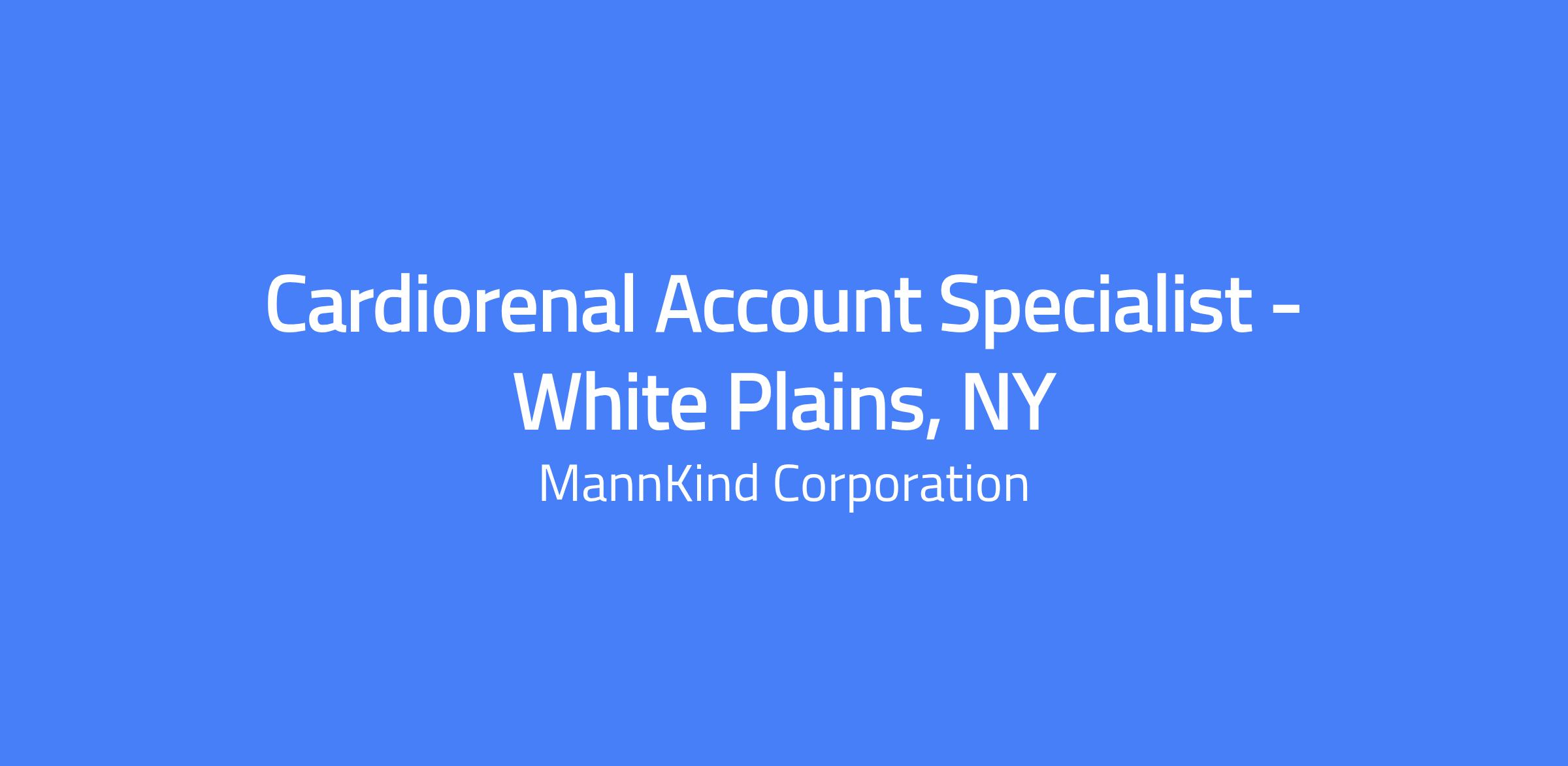 Cardiorenal Account Specialist in White Plains, NY. The role reports to the Regional Sales Director and focuses on driving utilization of approved products within the assigned territory by engaging HF specialists, cardiology, nephrology, emergency medicine, nurse practitioners, HF clinic staff, and other healthcare professionals. The position requires developing strategic territory plans, executing marketing and sales initiatives, and delivering outstanding customer experience to meet or exceed sales budgets.