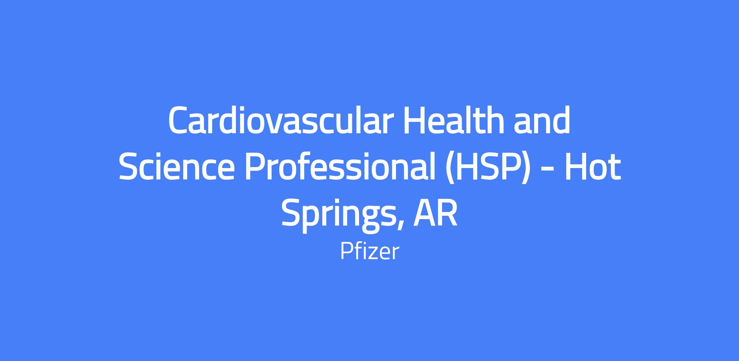 The Cardiovascular Health & Science Professional (HSP) is a remote, field-based role based in Hot Springs, AR, responsible for increasing territory sales and building relationships with assigned customers by promoting Pfizer products and developing effective business strategies. The role requires customer, market, and business acumen, analytical skills, and deep knowledge of product and disease states, with the ability to drive promotional activities and engage customers in person or virtually. The HSP collaborates with cross-functional teams to address customer needs and deliver Pfizer objectives compliantly.